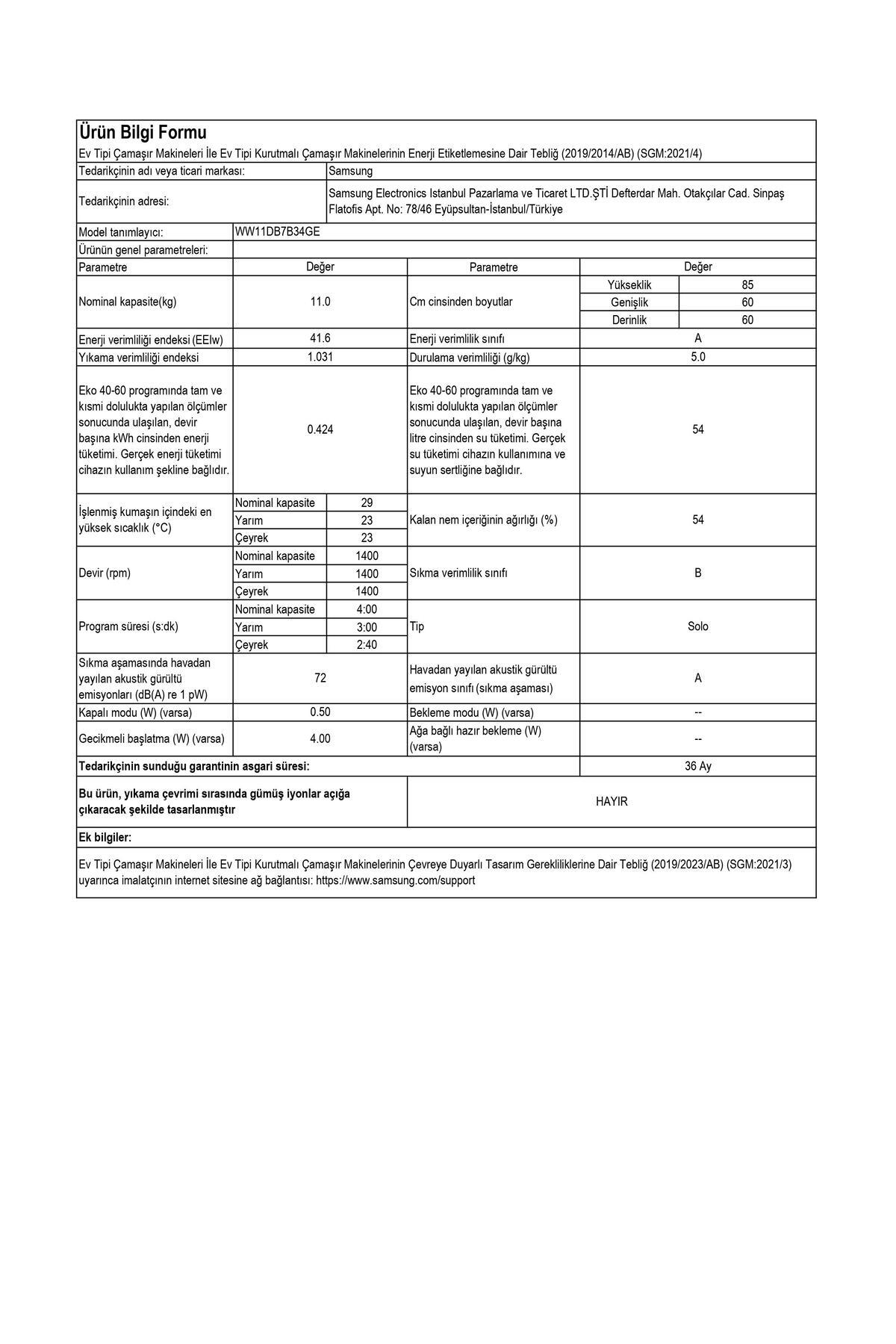 WW11DB7B34GEAH 11 Kg 1400 Devir Beyaz Çamaşır Makinesi WW11DB7B34GEAH 11 Kg 1400 Devir Beyaz Çamaşır Makinesi تک سایز