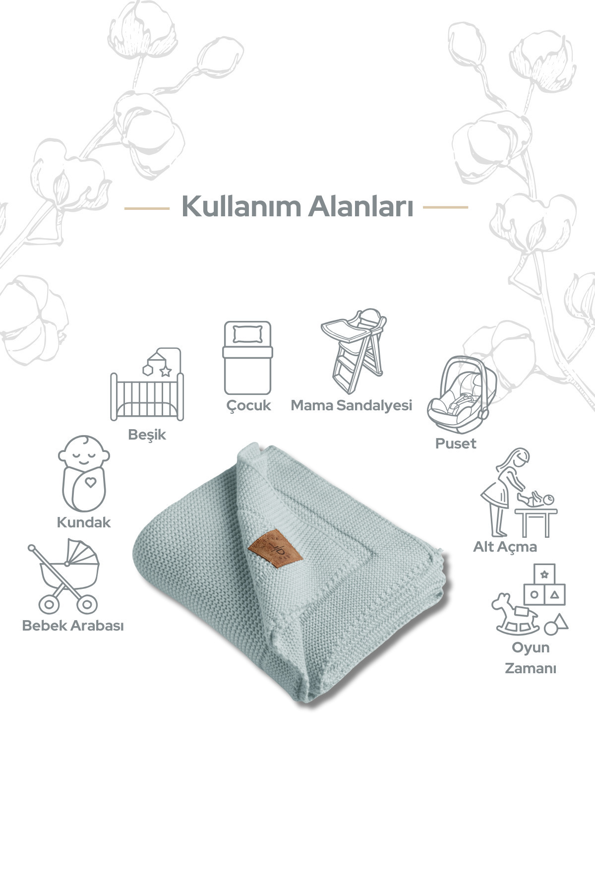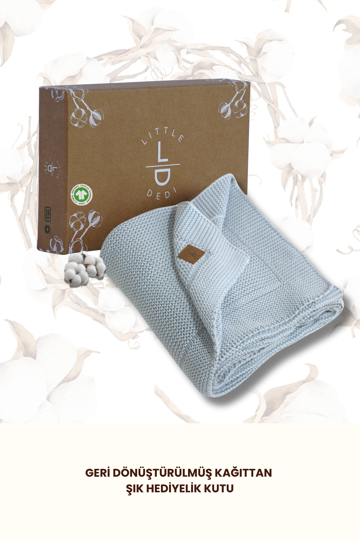 LITTLE DEDI Alina Organik Pamuk Triko Örme Açık Mavi Bebek Battaniyesi LITTLE DEDI Alina Organik Pamuk Triko Örme Açık Mavi Bebek Battaniyesi ALINA-P00-000 تک سایز