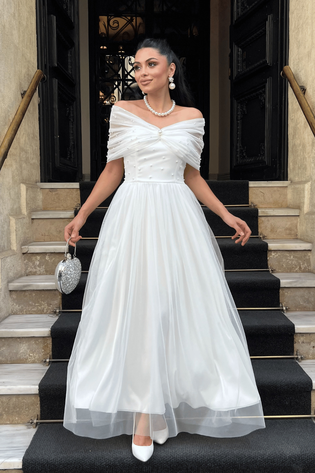Kadın Beyaz Kol Detaylı Fiyonklu Söz Nişan Nikah Abiye Elbise Kadın Beyaz Kol Detaylı Fiyonklu Söz Nişan Nikah Abiye Elbise TYC73677A9BDAE3000 44