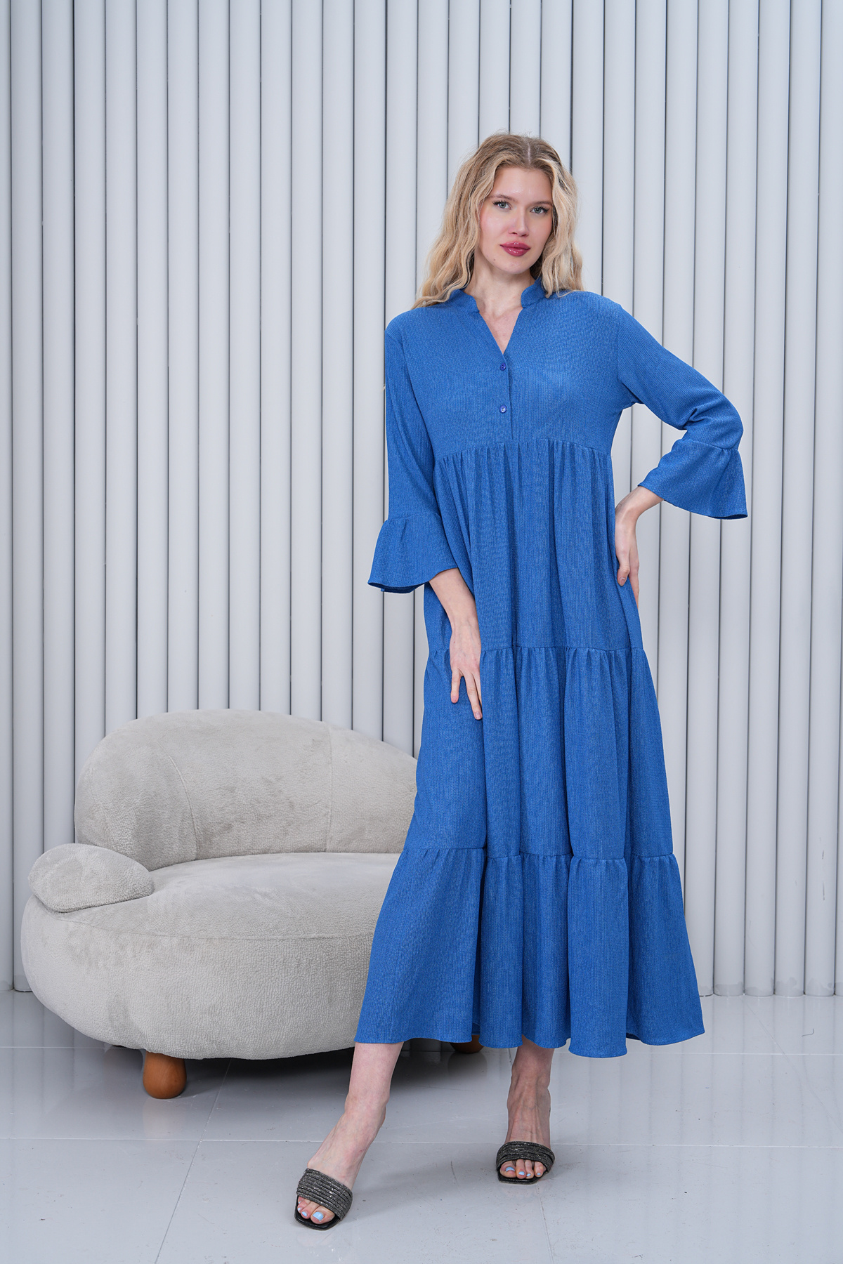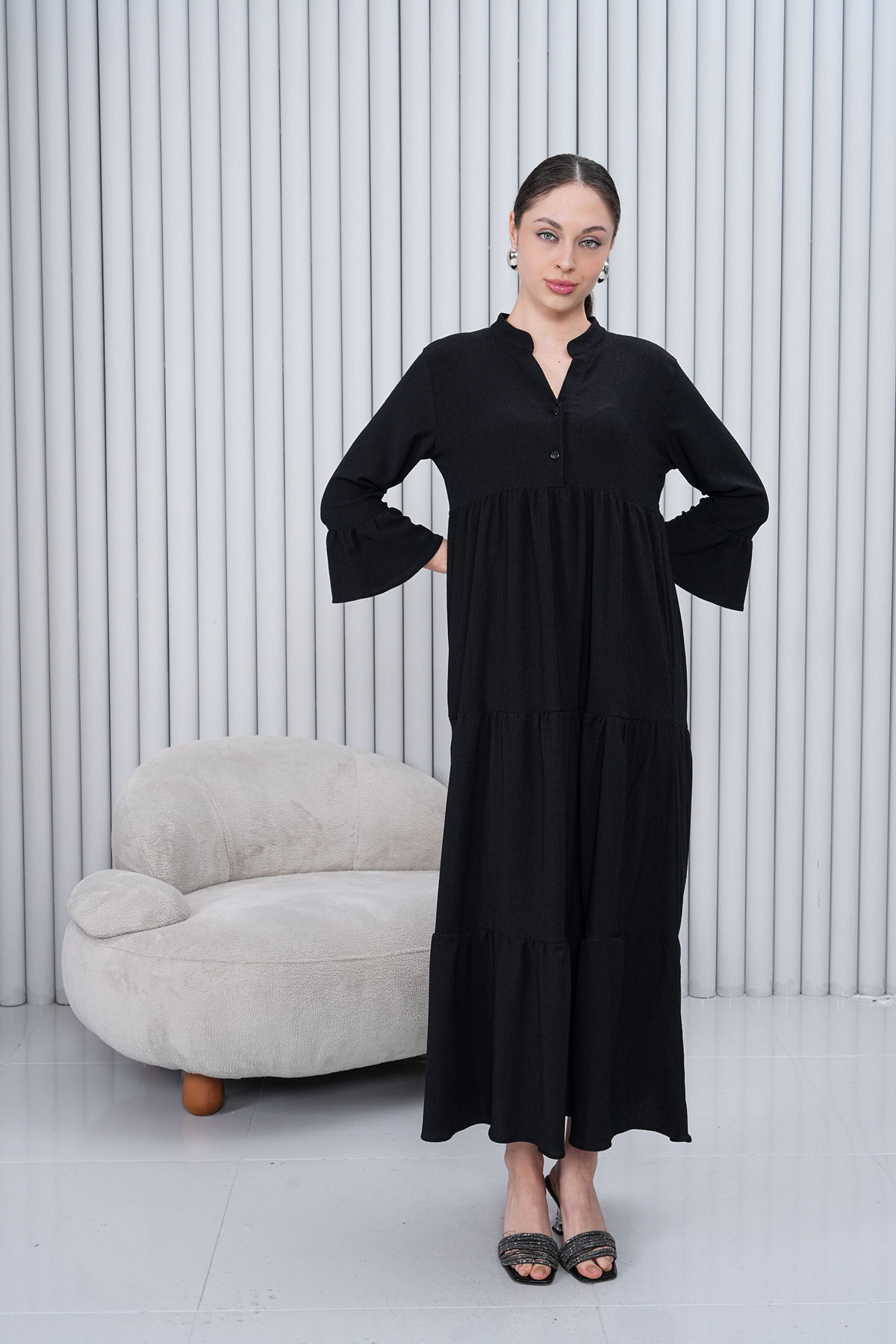 Kadın Hakim Yaka Düğmeli Uzun Dokuma Elbise Kadın Hakim Yaka Düğmeli Uzun Dokuma Elbise 4459 46