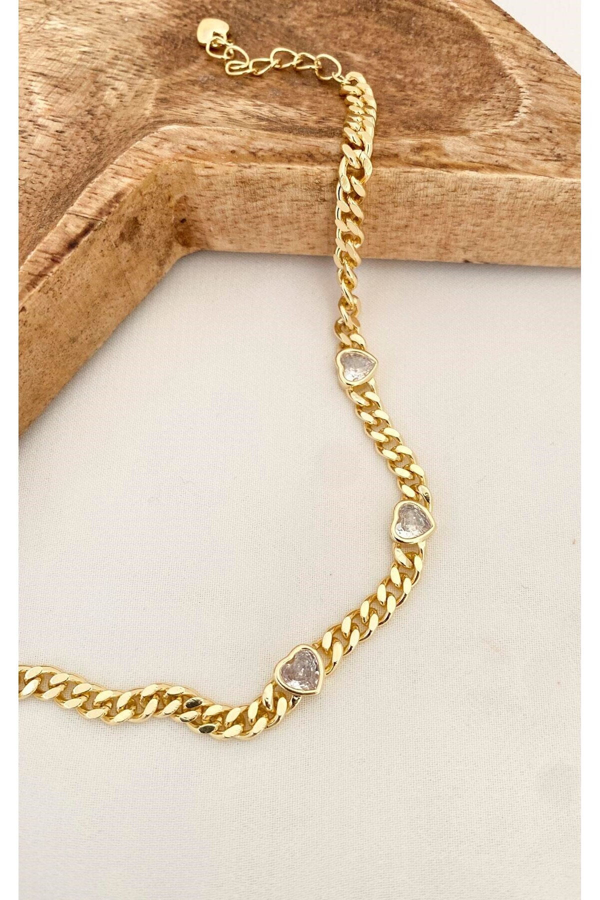 Kalp Detaylı Taşlı Yassı Zincir Gold Bileklik Kalp Detaylı Taşlı Yassı Zincir Gold Bileklik 550BLKALT0160000261 تک سایز