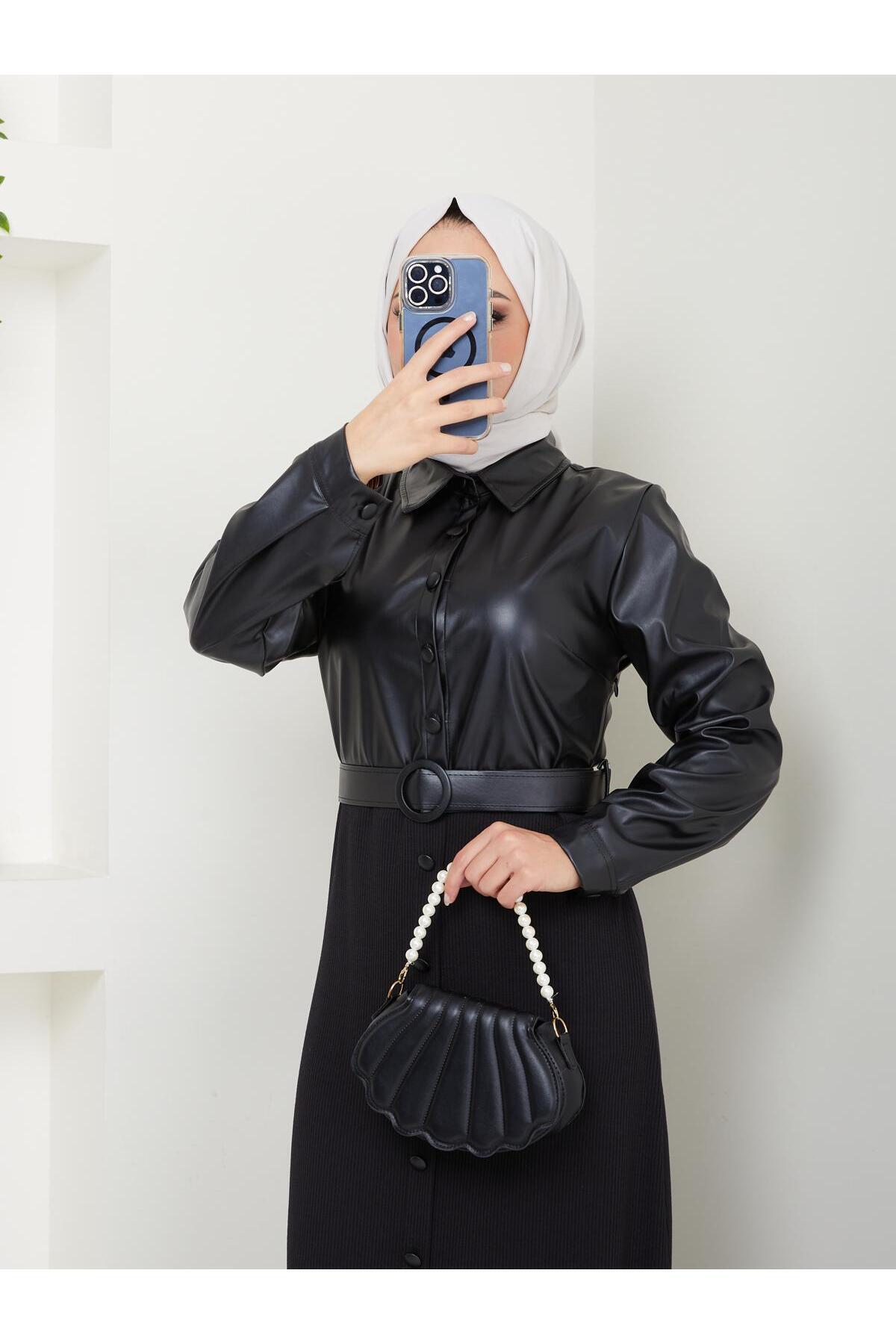 üst deri detaylı gömlek elbise üst deri detaylı gömlek elbise TYBEDL-10163100408505 46