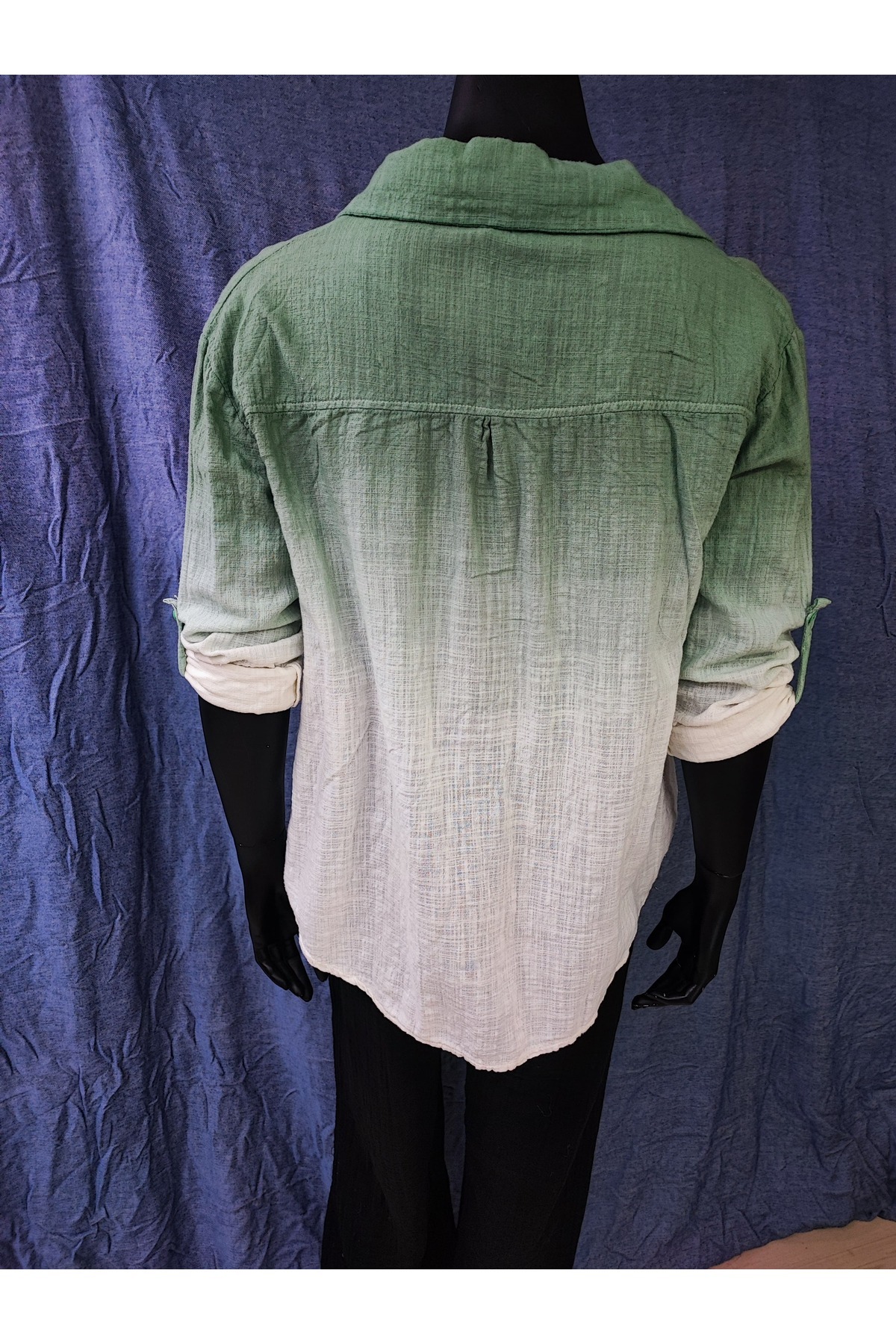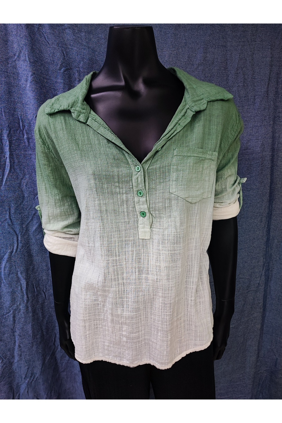 Pamuk Keten 5 Düğmeli Patlı, Cepli, Batik boyamalı Bluz Pamuk Keten 5 Düğmeli Patlı, Cepli, Batik boyamalı Bluz RO2025-011 L/XL