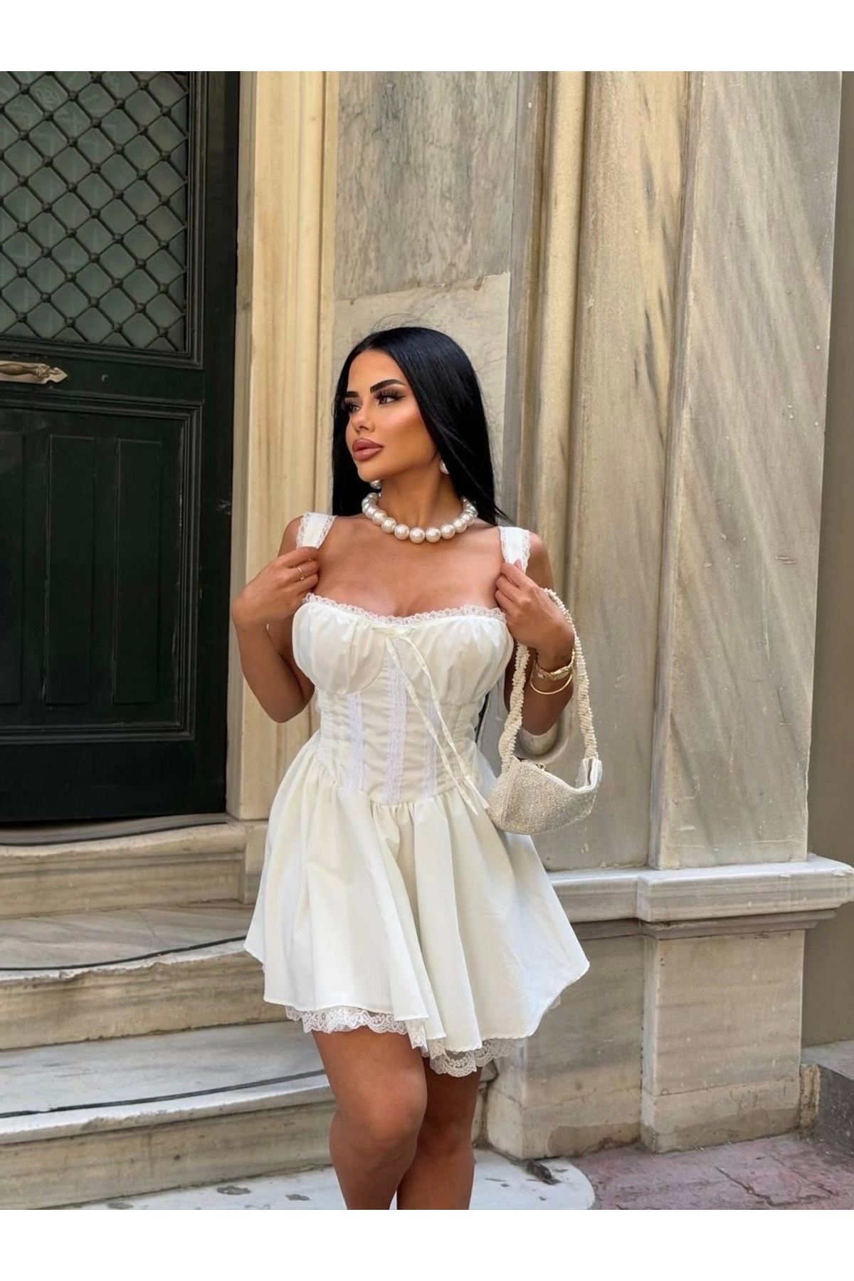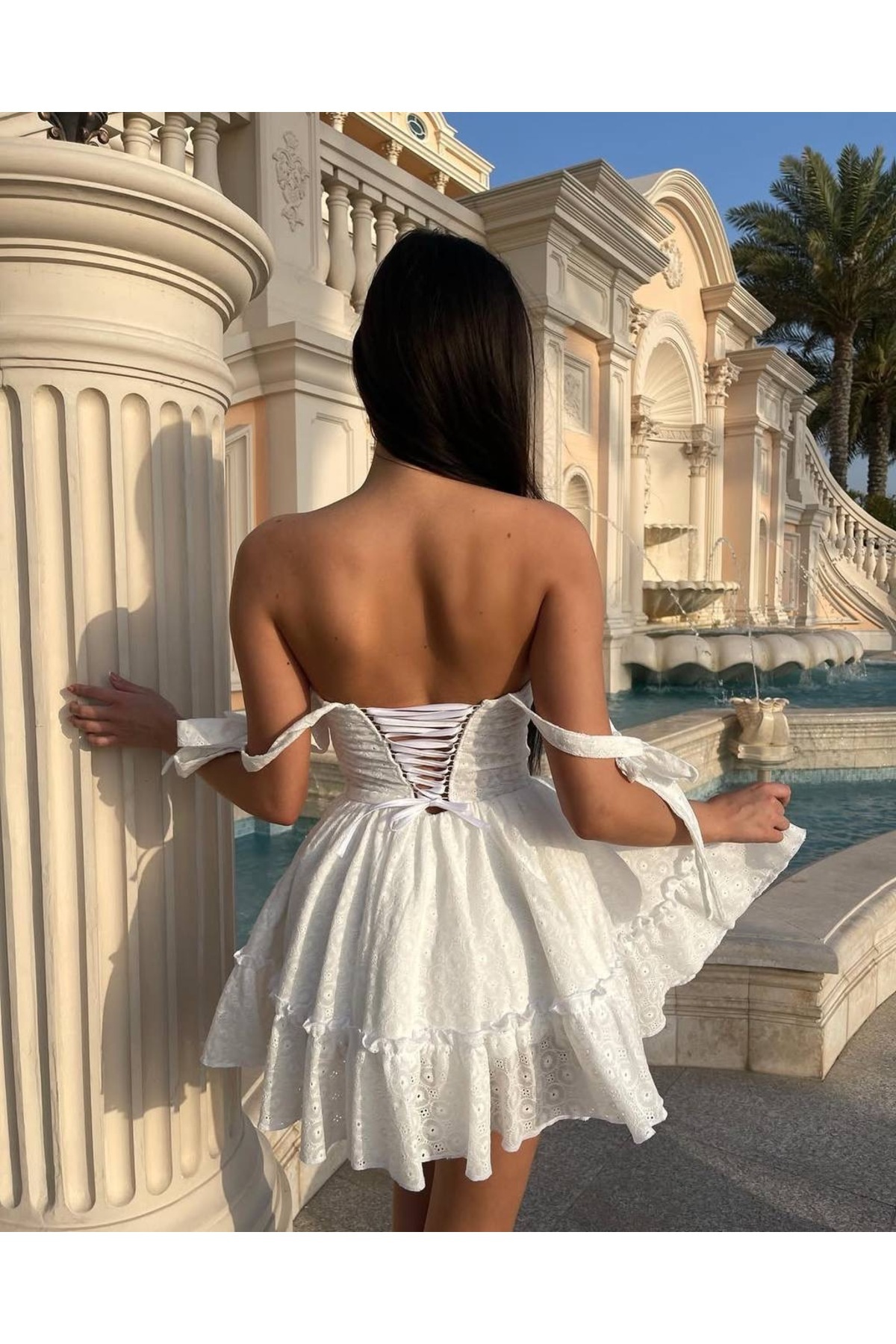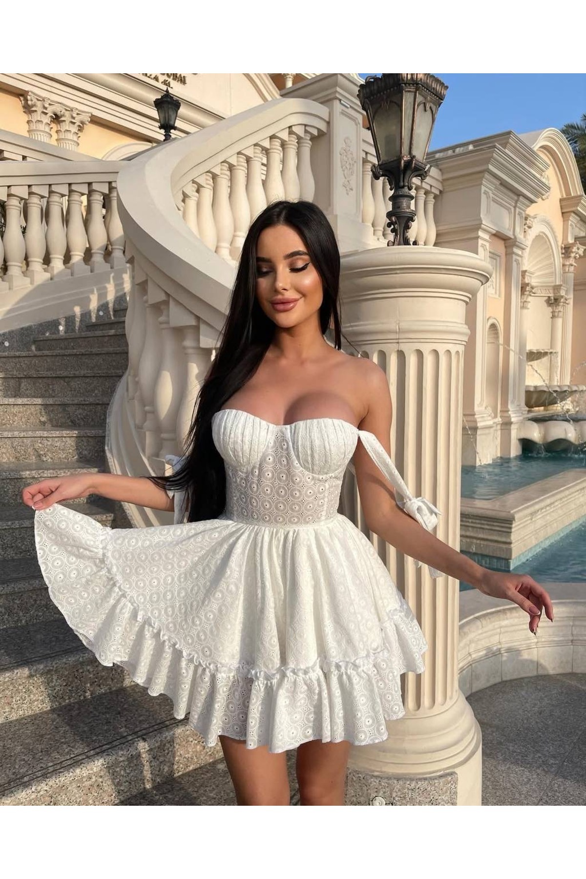 Beyaz Kalp Yaka Brode İşlemeli Omuz Bağlama Detaylı Klos Mini Elbise Beyaz Kalp Yaka Brode İşlemeli Omuz Bağlama Detaylı Klos Mini Elbise TYC53D98219033C900 L