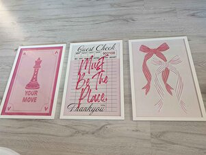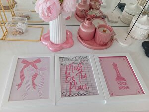 Beyaz Çerçeveli Tablo Seti, Pembe İllustrasyon Duvar Tablosu, 3 Adet Poster Seti, No:300788 Beyaz Çerçeveli Tablo Seti, Pembe İllustrasyon Duvar Tablosu, 3 Adet Poster Seti, No:300788 Ç_300788 70 x 100