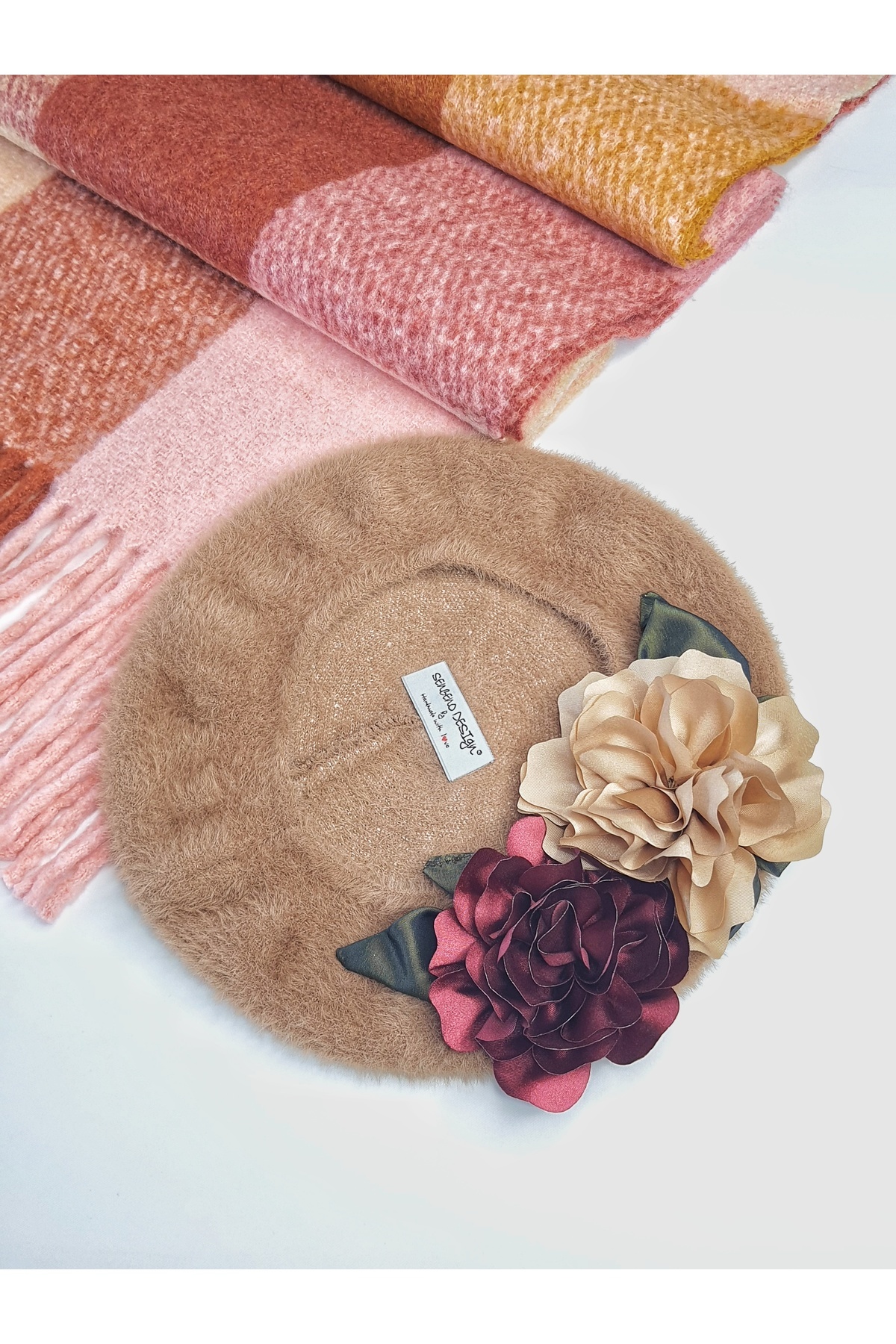 EL YAPIMI KUMAŞ ÇİÇEKLİ ÖZGÜN TASARIM BEJ KADIN RESSAM BERE EKOSE ATKI TAKIM EL YAPIMI KUMAŞ ÇİÇEKLİ ÖZGÜN TASARIM BEJ KADIN RESSAM BERE EKOSE ATKI TAKIM CICEKLIATKIBERETK تک سایز