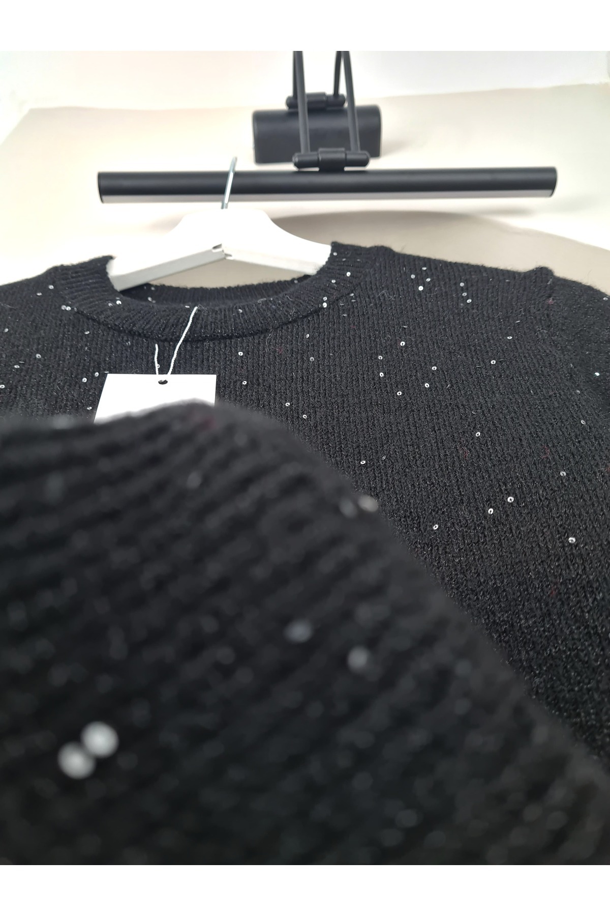 PUL PAYET KISA KOL TRİKO KAZAK_SİYAH PUL PAYET KISA KOL TRİKO KAZAK_SİYAH 744K445 Standart