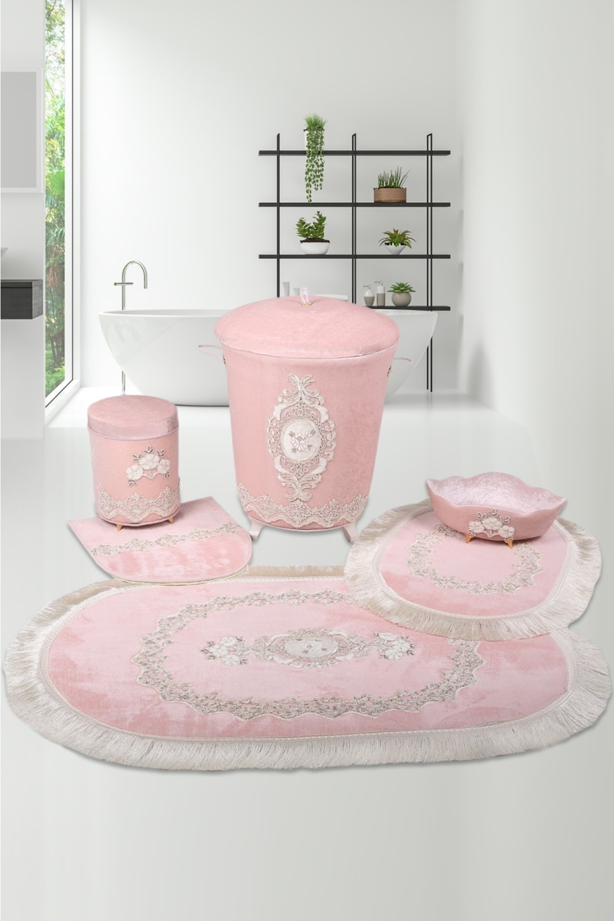 Exclusive Pembe 6'lı Çeyizlik Dantelli Banyo Seti (3'lü Banyo Paspası + 3'lü Çamaşır Sepeti) Exclusive Pembe 6'lı Çeyizlik Dantelli Banyo Seti (3'lü Banyo Paspası + 3'lü Çamaşır Sepeti) DKM-EXCLUSIVE-6LI-BP تک سایز