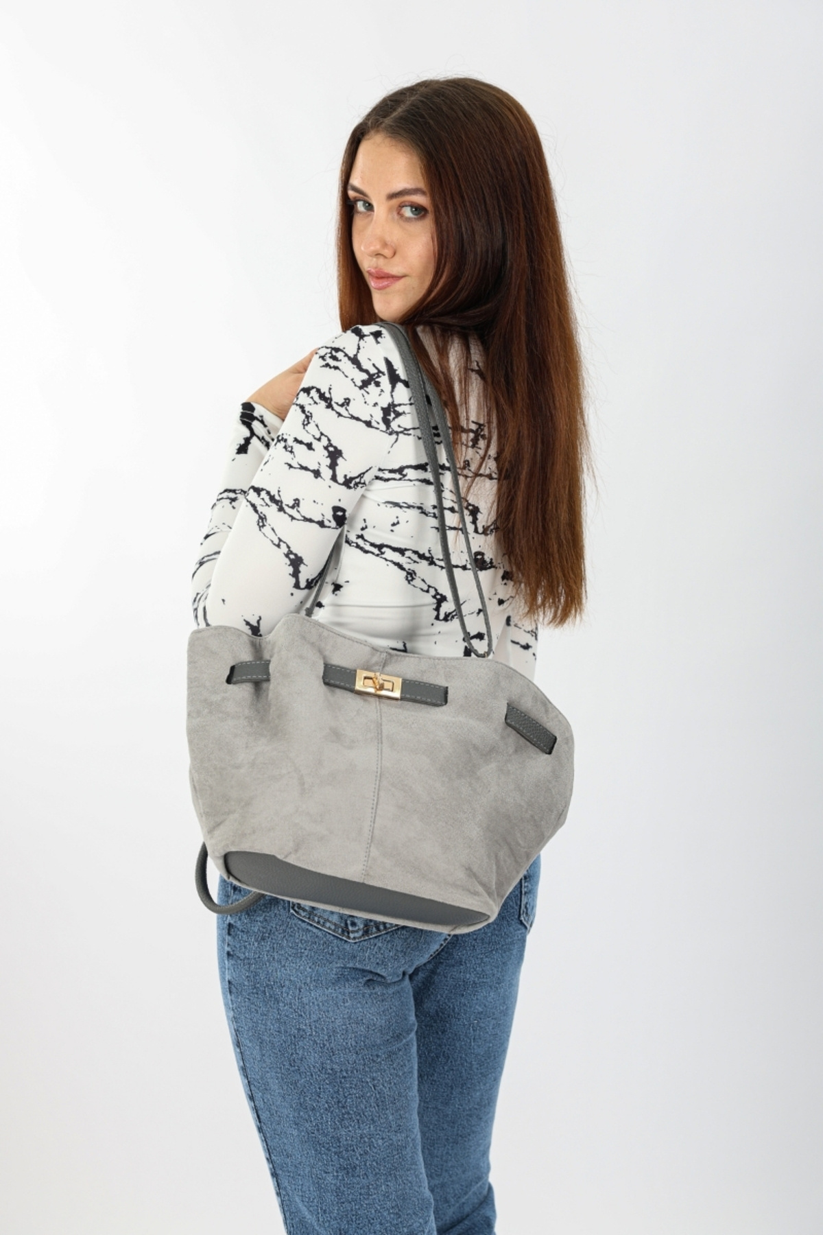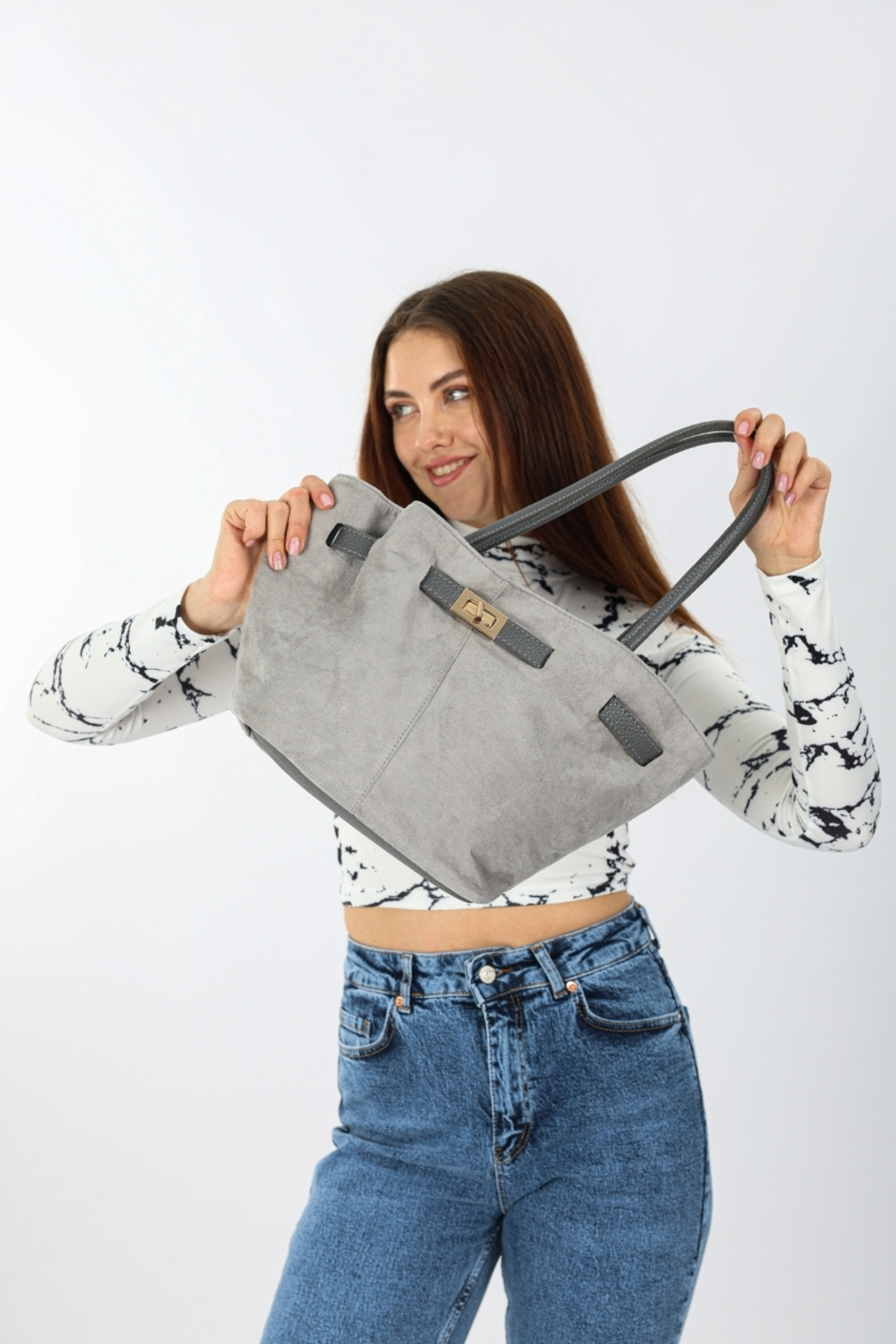 Süet kadın kemer aksesuarlı mıknatıslı kadın omuz çantası,uzun askılı çapraz çanta,şık tasarım Süet kadın kemer aksesuarlı mıknatıslı kadın omuz çantası,uzun askılı çapraz çanta,şık tasarım gn.011 Standart
