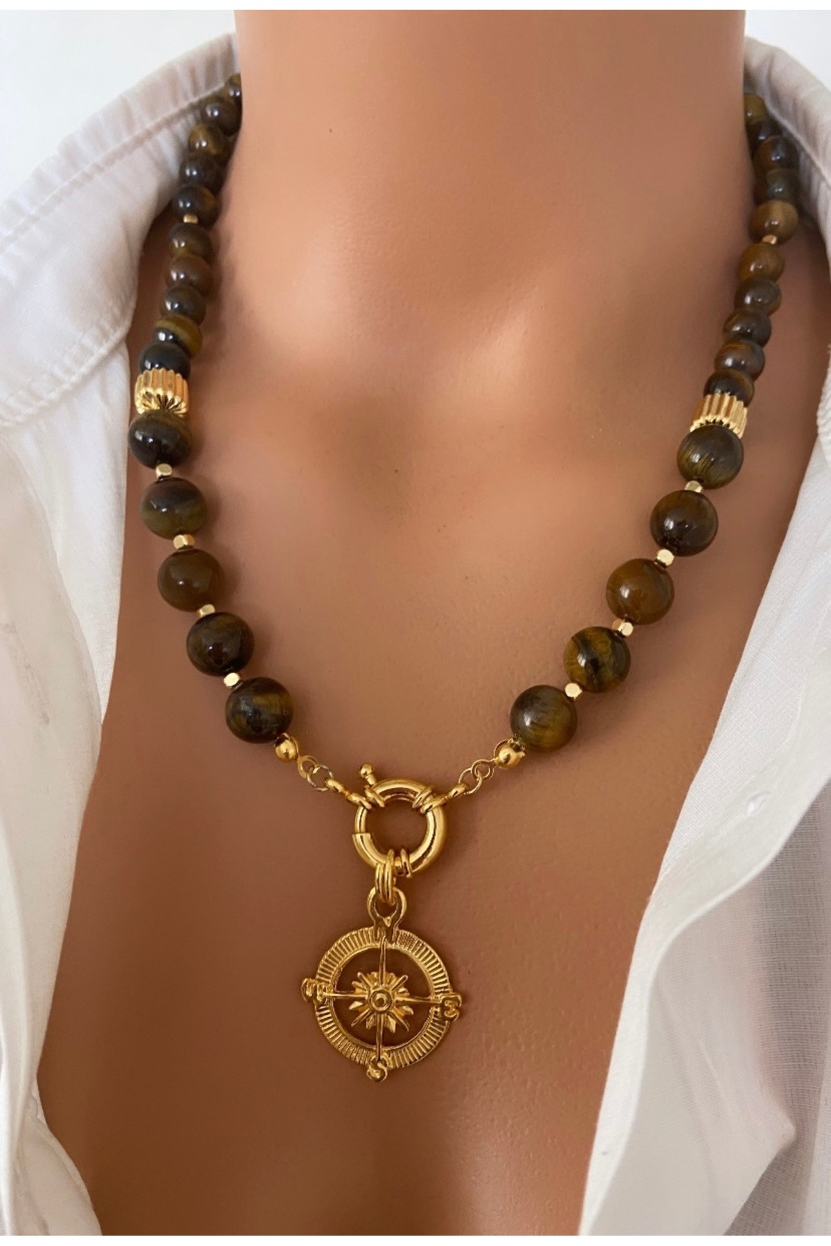 Doğal Taş Kahverengi Kaplan Gözü Kutup Yıldızı Altın Kaplama Kadın Kolye Özel Hediye Doğal Taş Kahverengi Kaplan Gözü Kutup Yıldızı Altın Kaplama Kadın Kolye Özel Hediye kaplangözükutupyıldızıkolye M