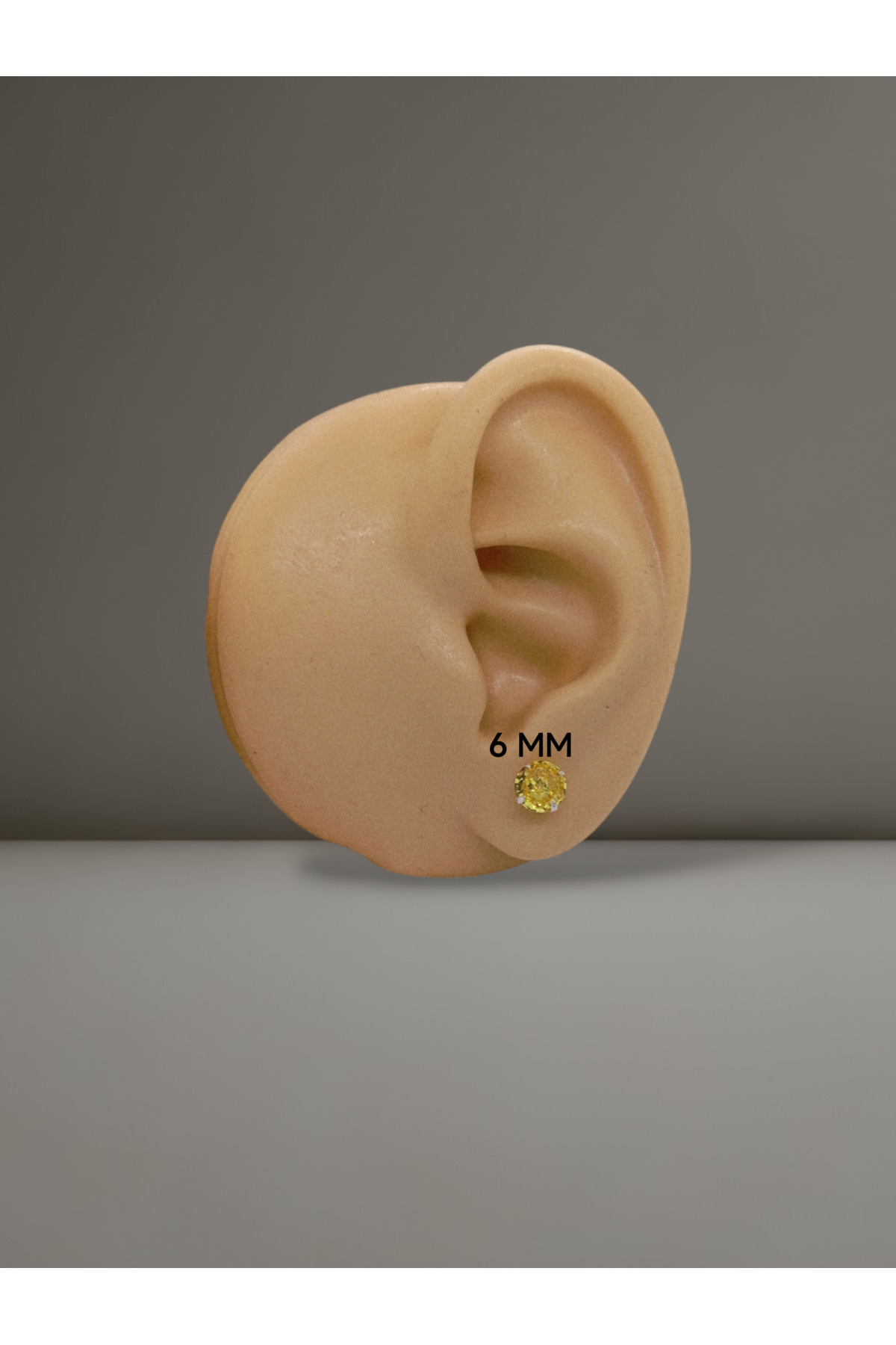 925 Ayar Gümüş Zirkon Tektaş Sarı Yuvarlak Küpe ( 1 Çift ) 925 Ayar Gümüş Zirkon Tektaş Sarı Yuvarlak Küpe ( 1 Çift ) KJA00073 4 MM