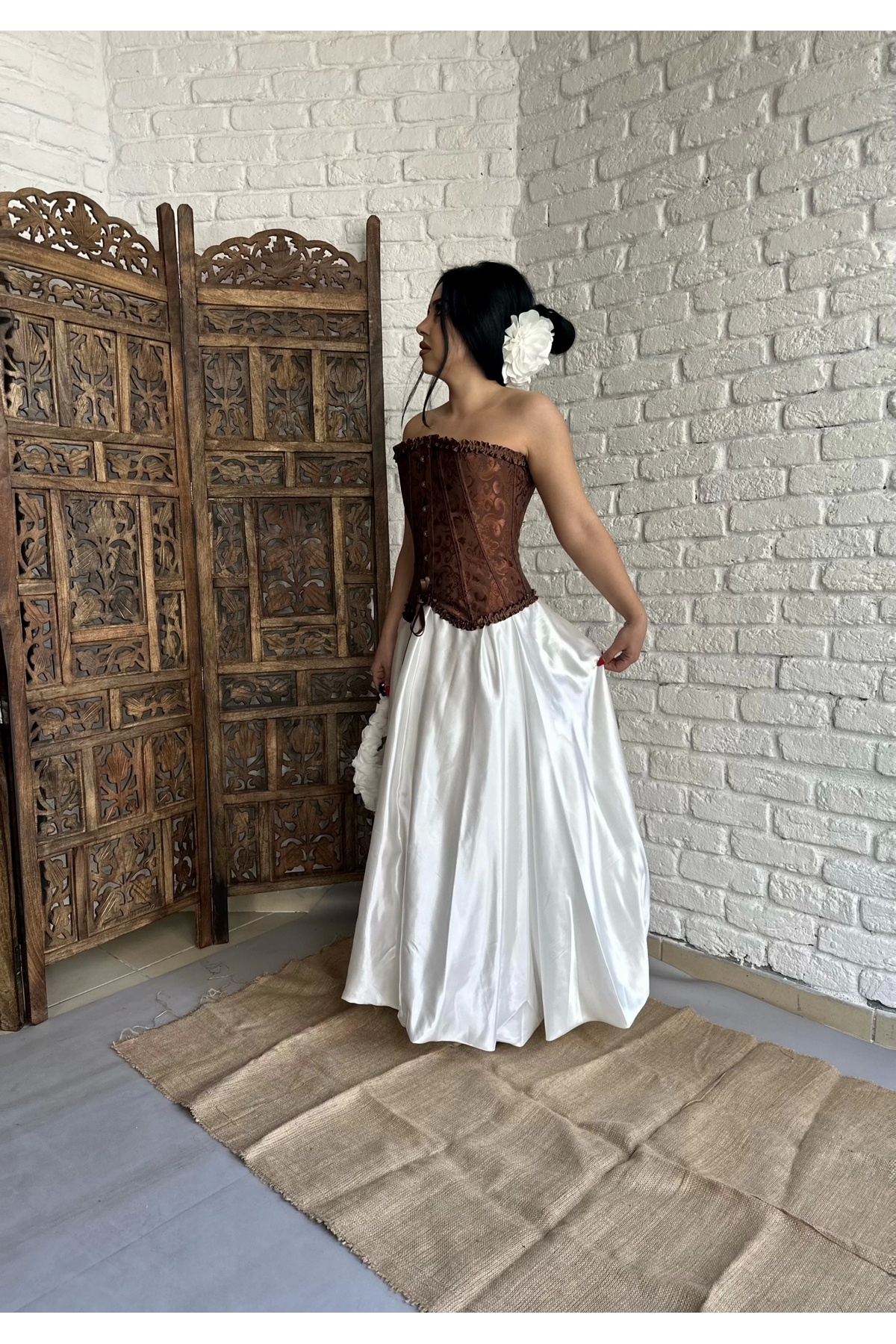 Kadın Beyaz Saten Uzun Balon Etek Kadın Beyaz Saten Uzun Balon Etek DE241069 L
