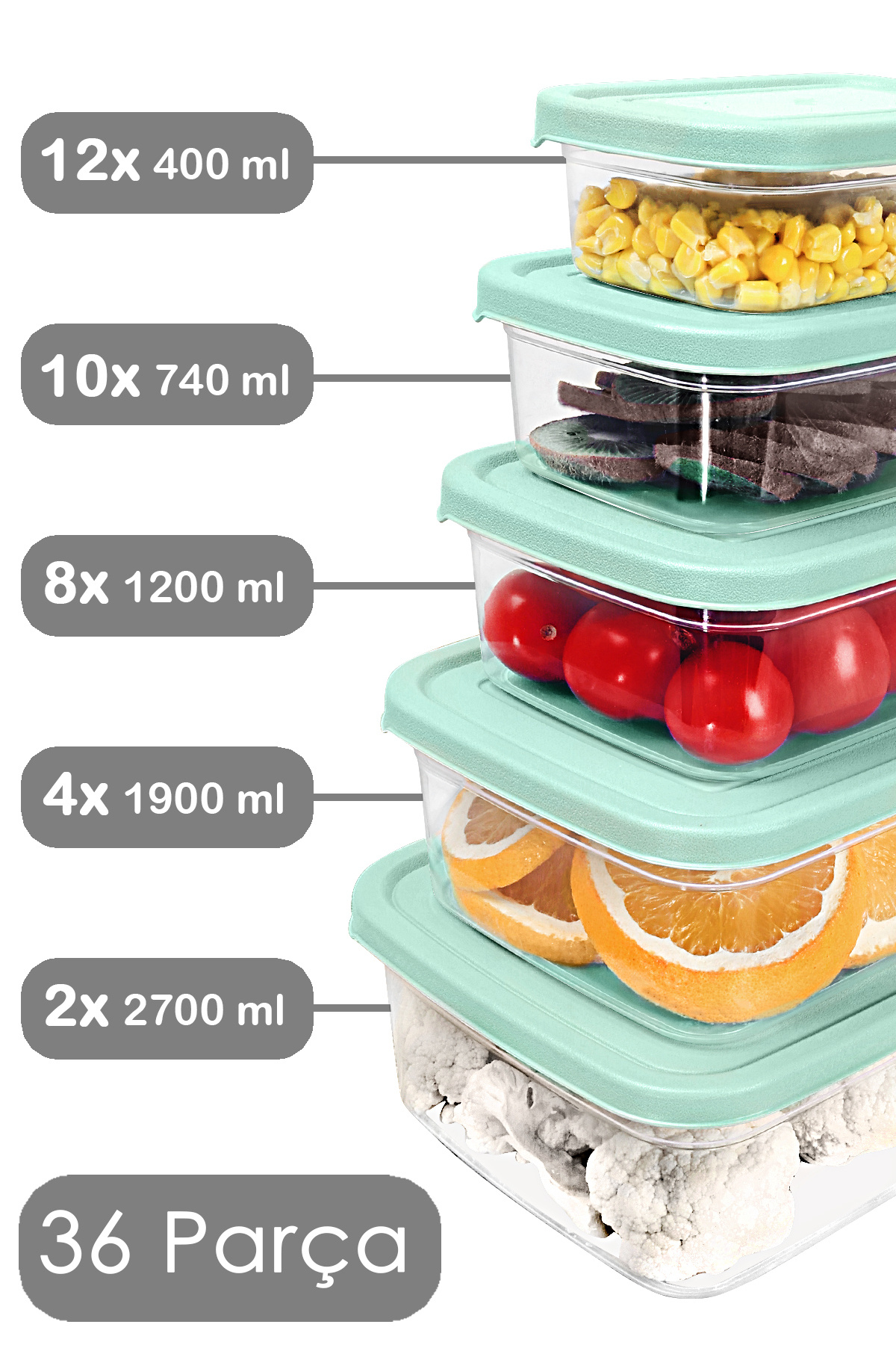 36'lı Dikdörtgen Erzak Saklama Kabı Seti - Mikrodalgaya Uygun Düzenleyici Organizer Erzak Kabı Yeşil 36'lı Dikdörtgen Erzak Saklama Kabı Seti - Mikrodalgaya Uygun Düzenleyici Organizer Erzak Kabı Yeşil MCH-2479 تک سایز