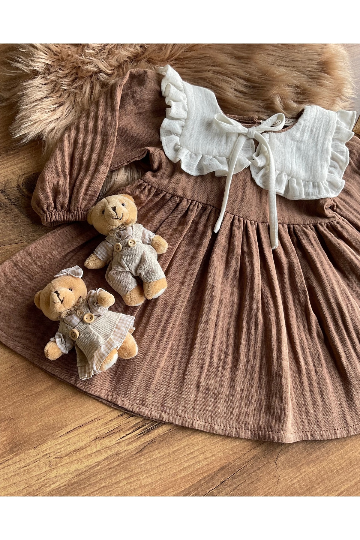 Yakalı Müslin Kız Bebek Elbise Yakalı Müslin Kız Bebek Elbise UN008 3 Yaş