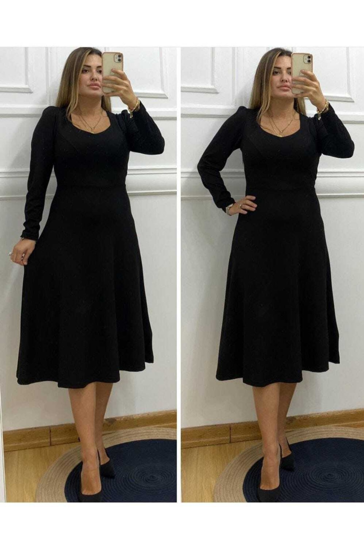 Uzun Kollu Kruvaze Yaka Midi Şifon Elbise Uzun Kollu Kruvaze Yaka Midi Şifon Elbise 528101 48
