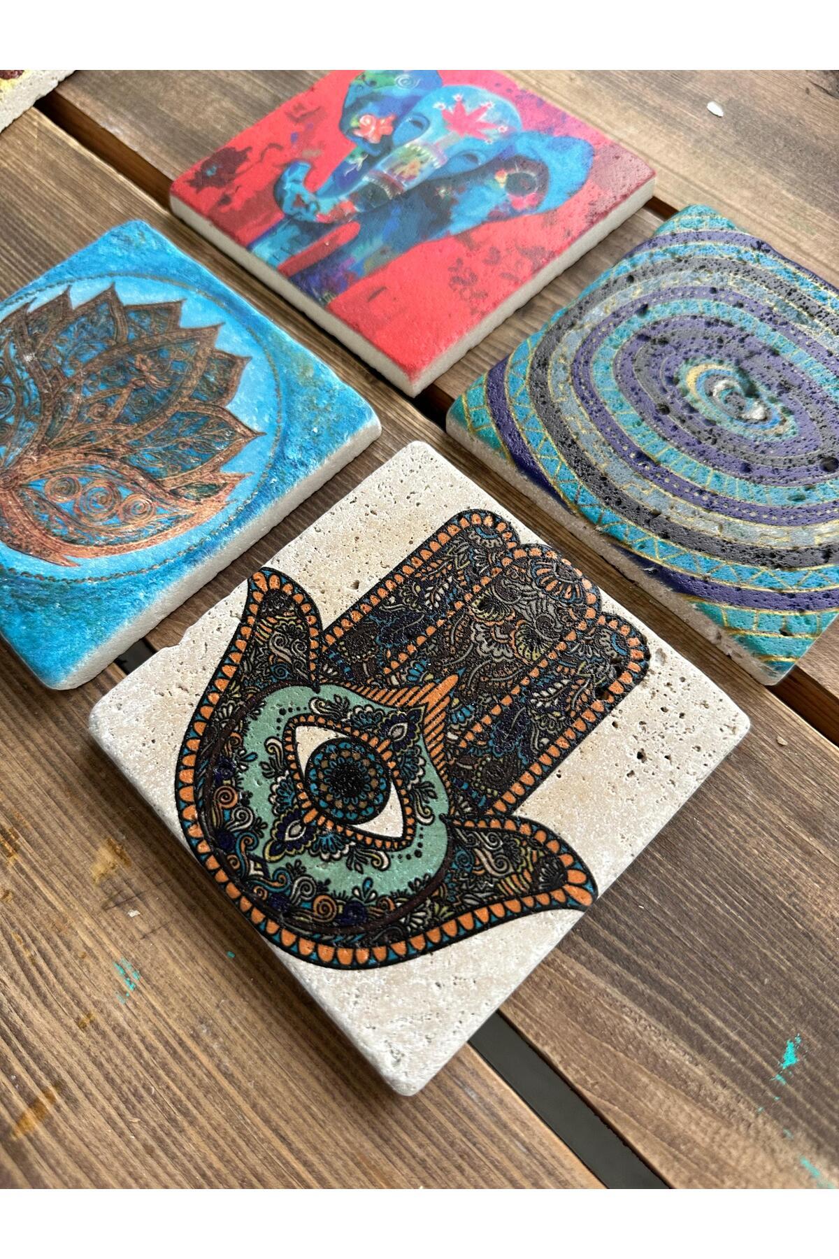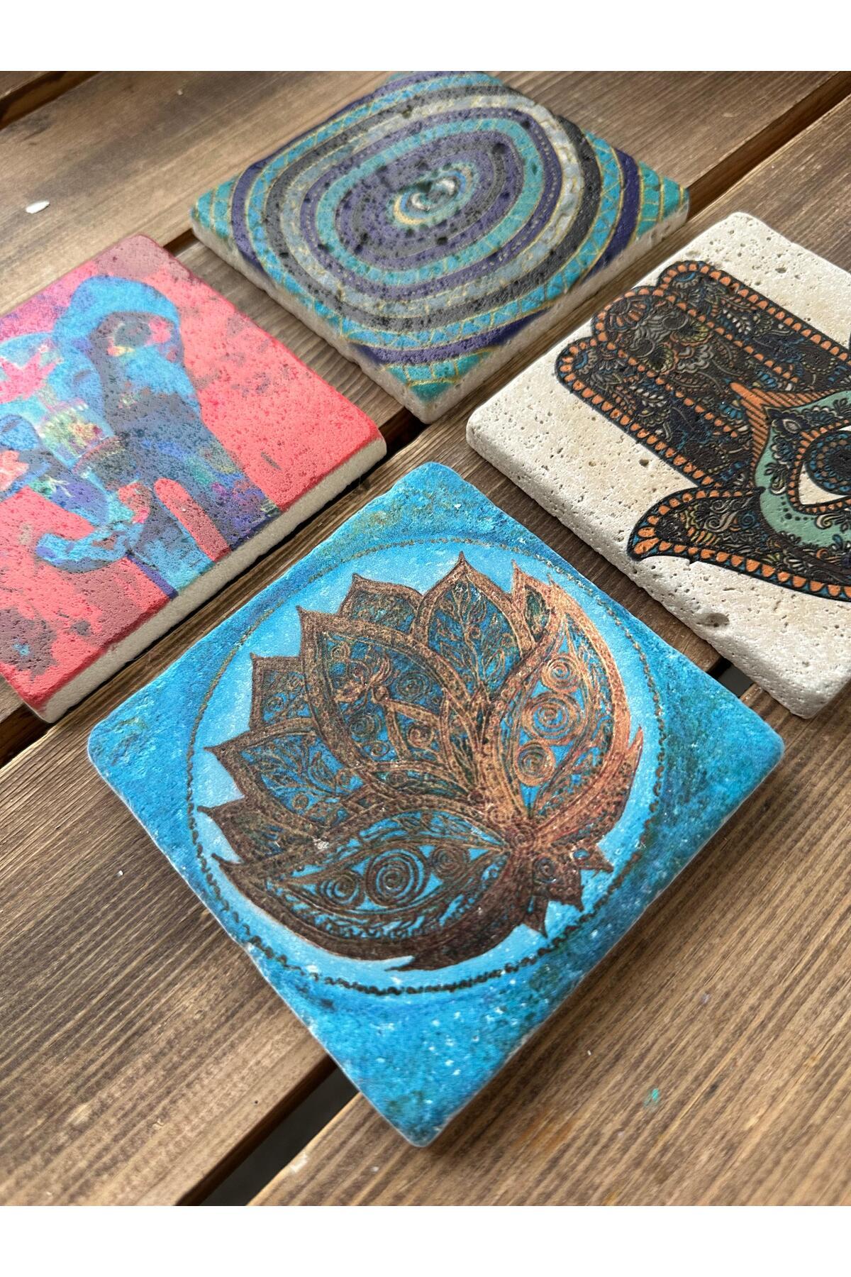 Baskılı Doğaltaş Bardak Altlığı 4'lü Set renklı Baskılı Doğaltaş Bardak Altlığı 4'lü Set renklı brdk11 تک سایز