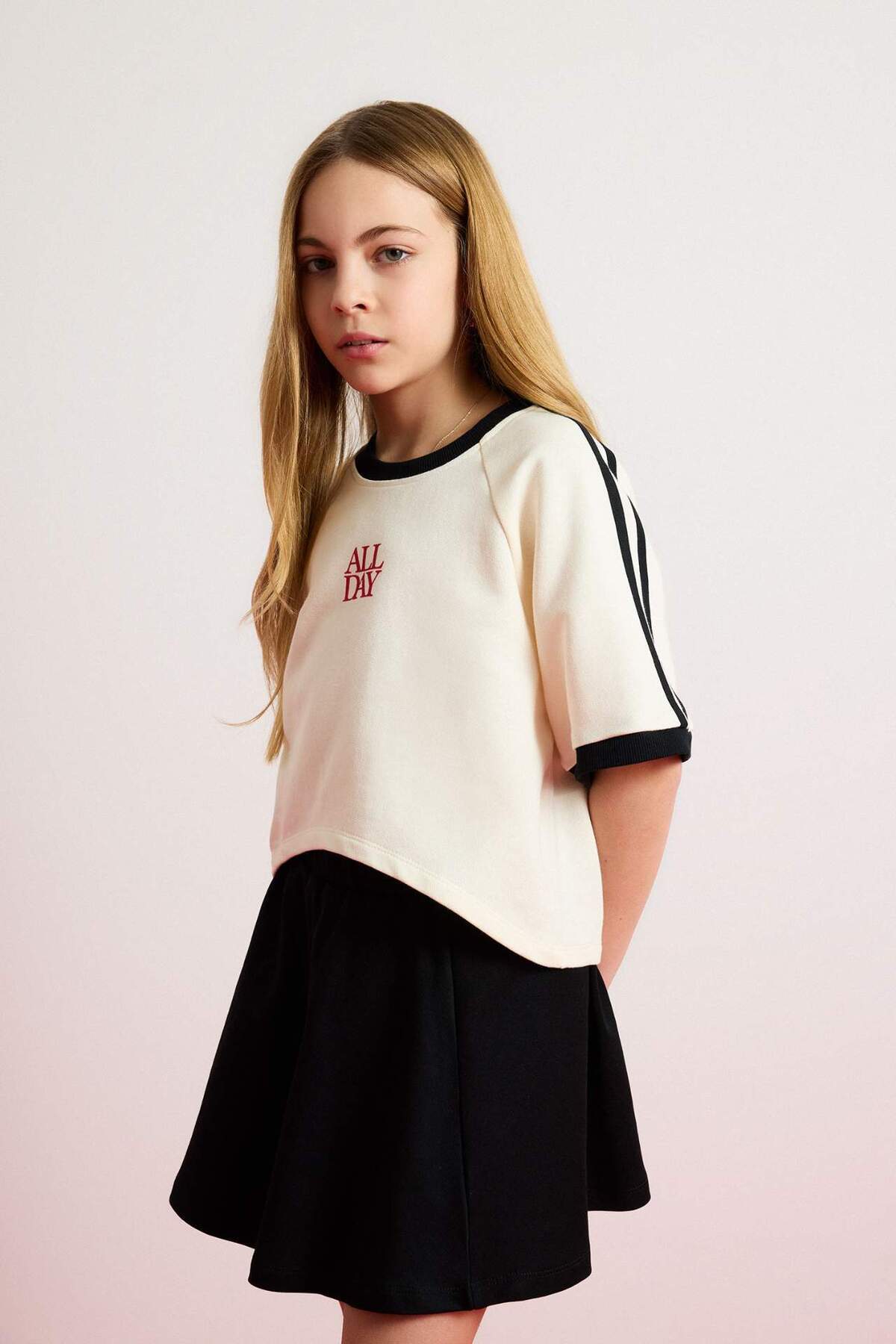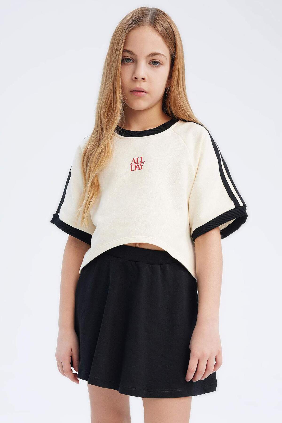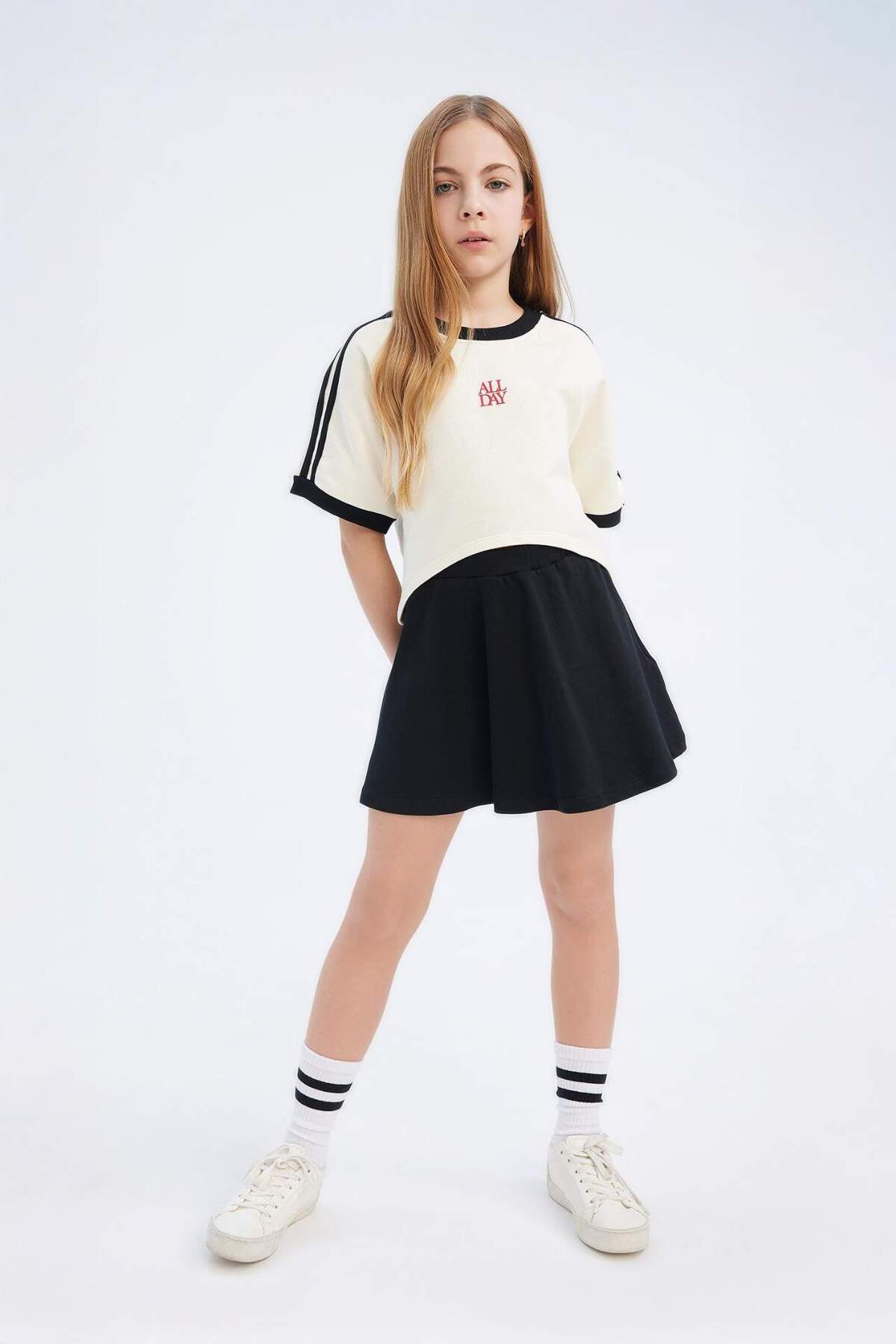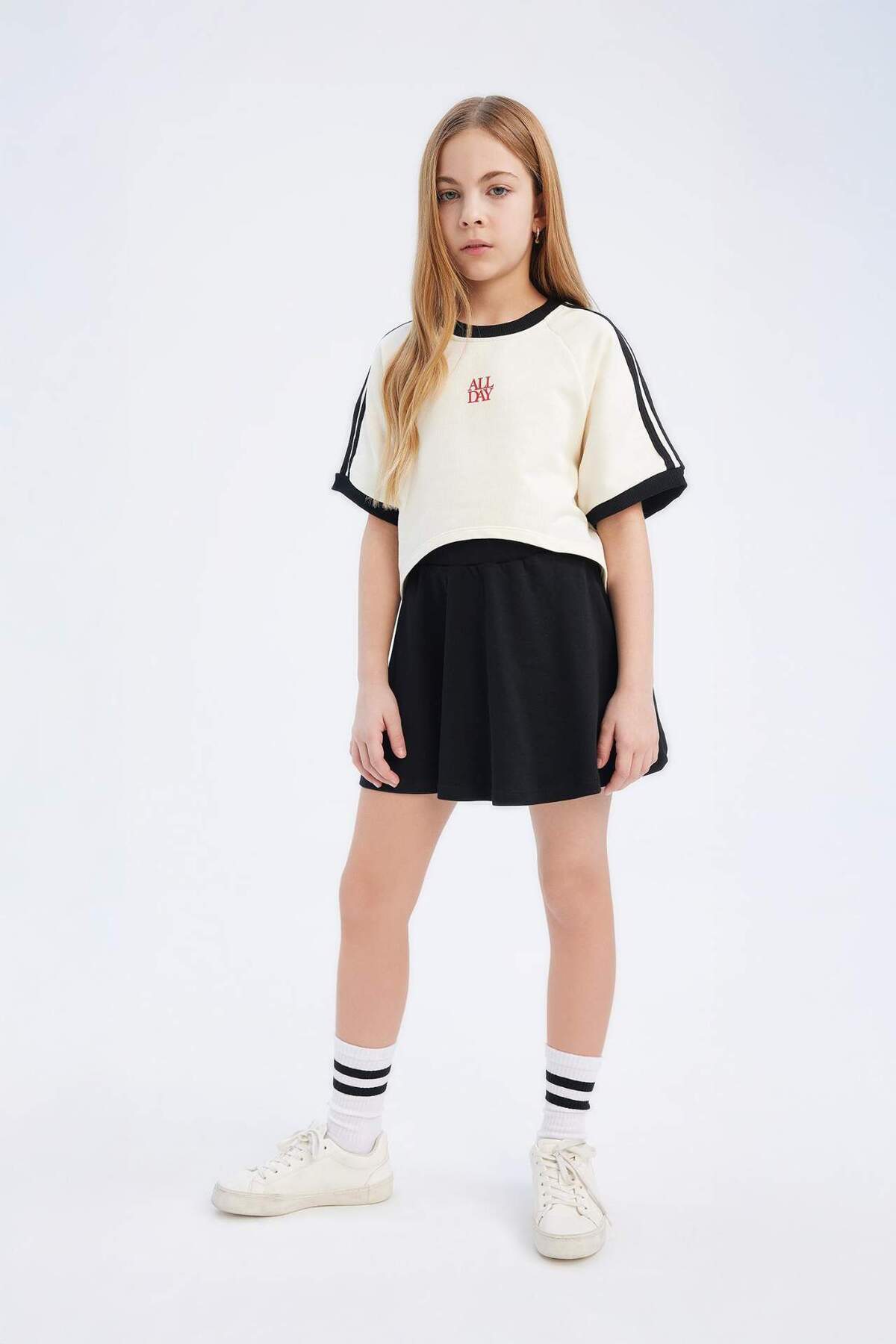 Kız Çocuk 2li Takım Bisiklet Yaka Baskılı Kısa Kollu Tişört Etek E0416A825SM Kız Çocuk 2li Takım Bisiklet Yaka Baskılı Kısa Kollu Tişört Etek E0416A825SM 13-14 Yaş