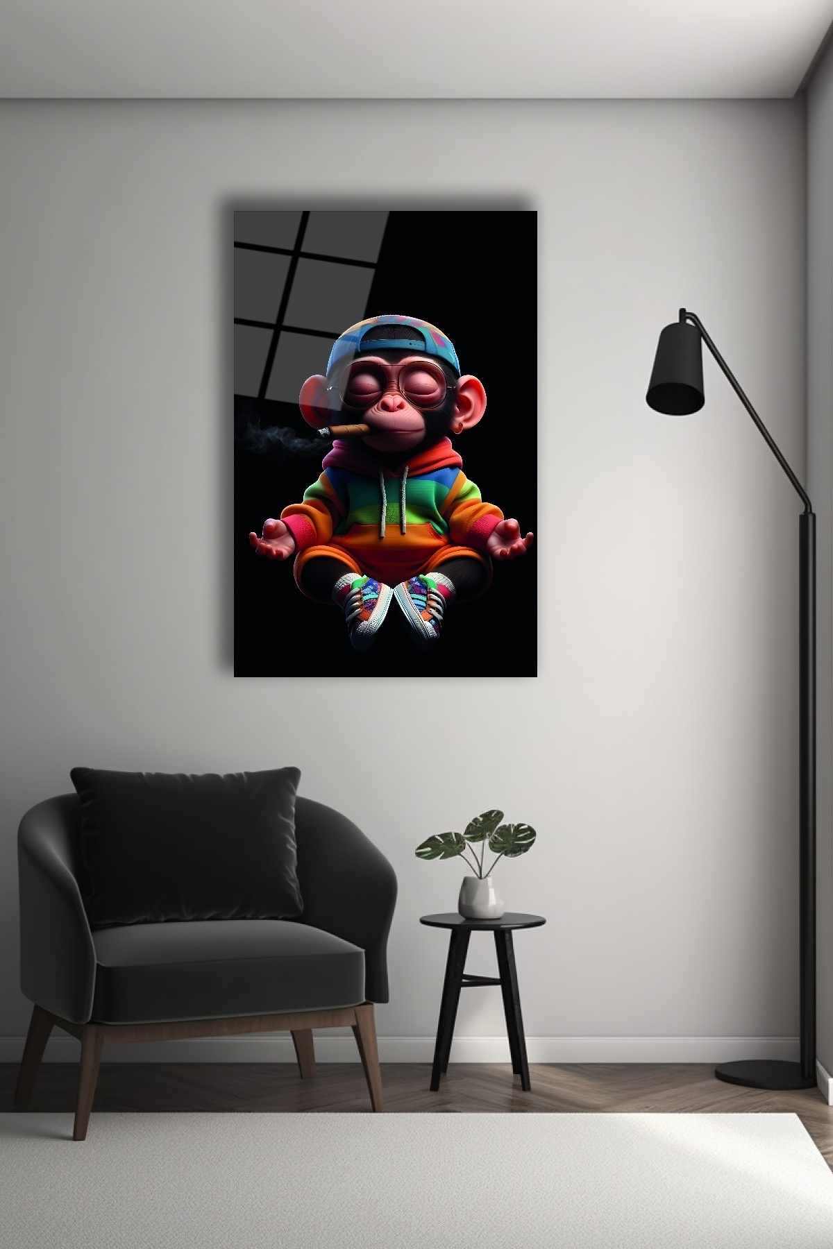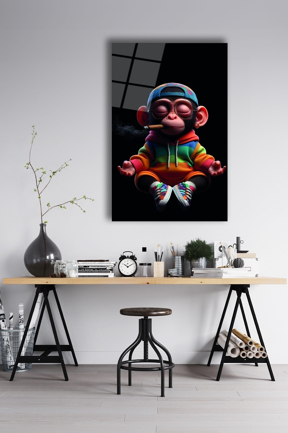 Meditasyon Yapan Maymun Modern Cam Tablo Meditasyon Yapan Maymun Modern Cam Tablo BRNAL330 150 x 95