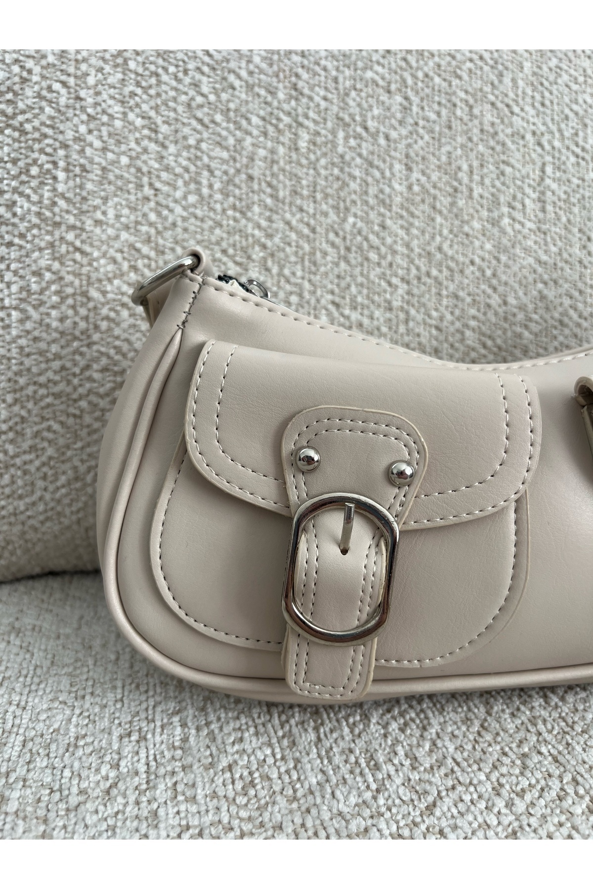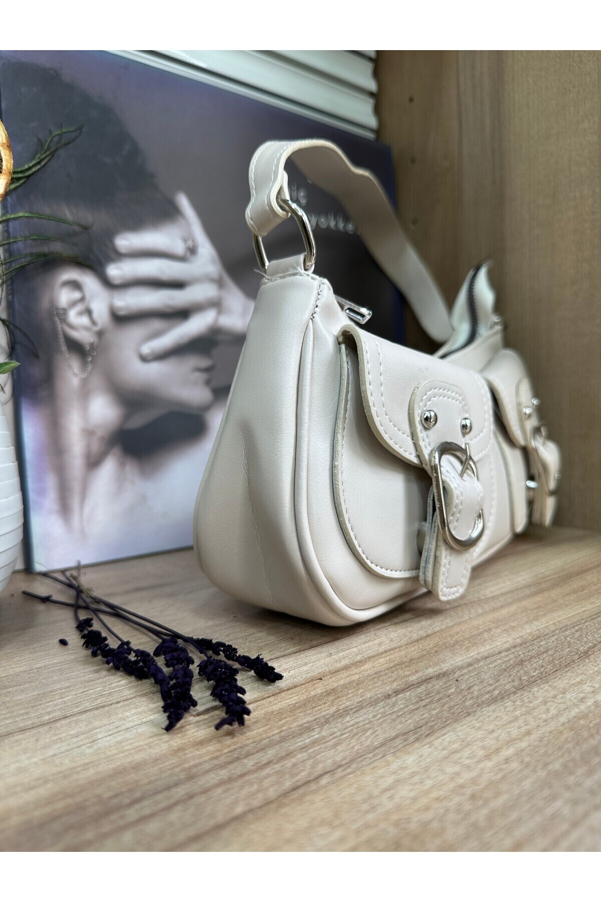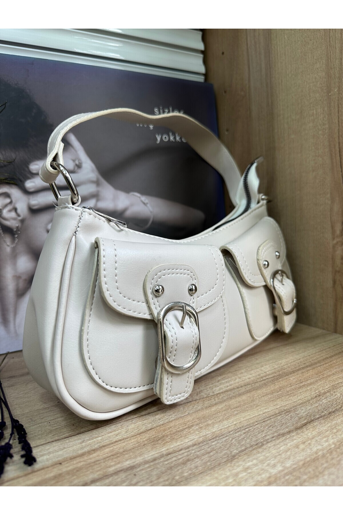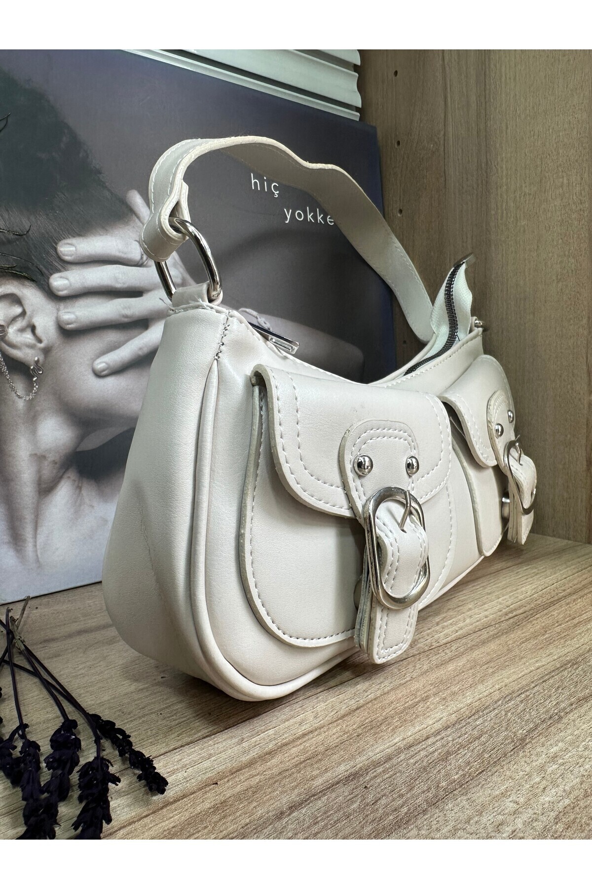 Kadın Beyaz Renk Tokalı Ön Kısım İki Adet Cepli Şık Tasarım Yumuşak Doku Omuz Çantası Kadın Beyaz Renk Tokalı Ön Kısım İki Adet Cepli Şık Tasarım Yumuşak Doku Omuz Çantası kpa624034374 Standart