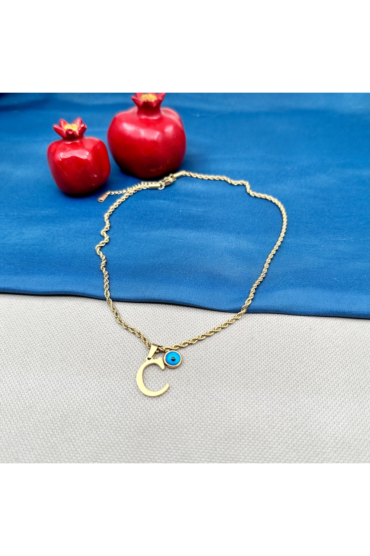 Mavi Boncuk Ve ( C ) Harfi Gold Renk Burgu Model Kararmaz Çelik Kolye Mavi Boncuk Ve ( C ) Harfi Gold Renk Burgu Model Kararmaz Çelik Kolye kol3019 تک سایز