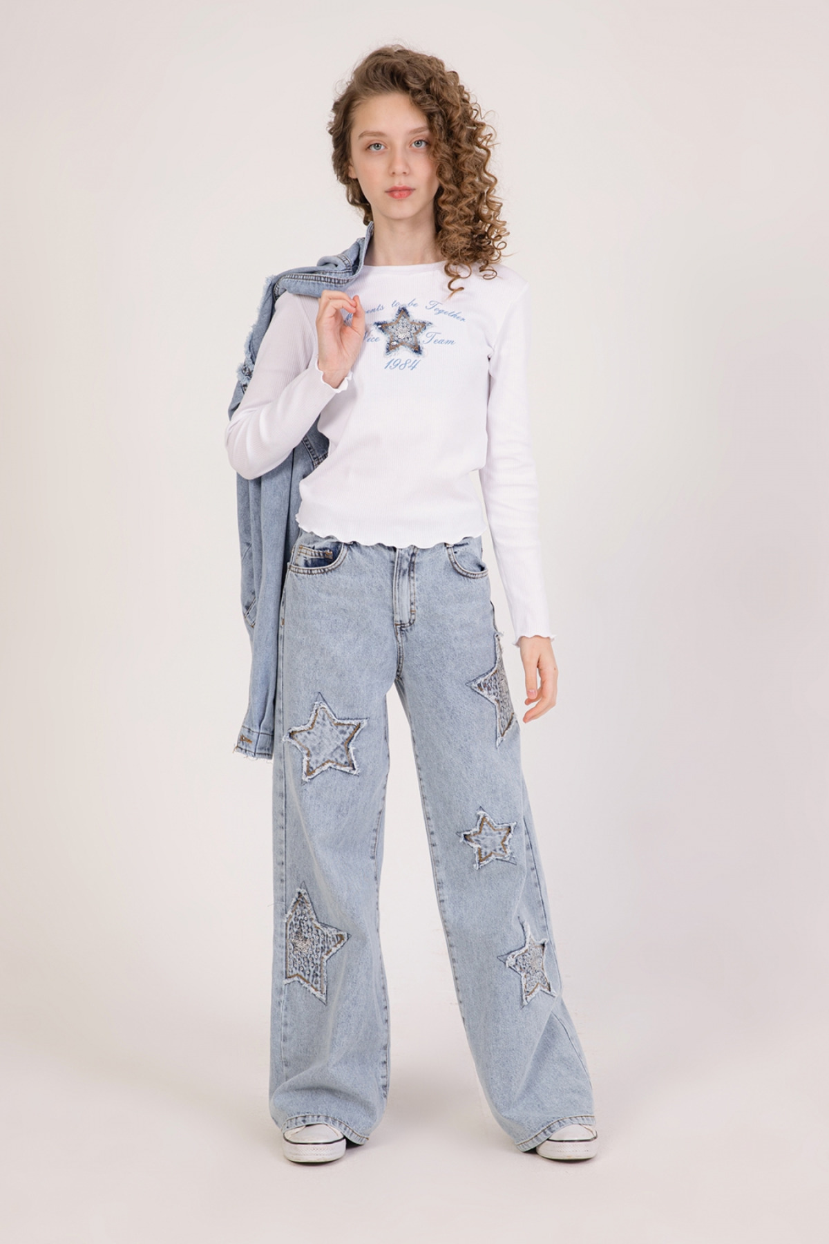 Premium Yıldız Detaylı Yumuşak Dokulu Bol Paça Wide Leg Jean Kız Çocuk Kot Pantolon Premium Yıldız Detaylı Yumuşak Dokulu Bol Paça Wide Leg Jean Kız Çocuk Kot Pantolon DMB PANT 23 13-14 Yaş