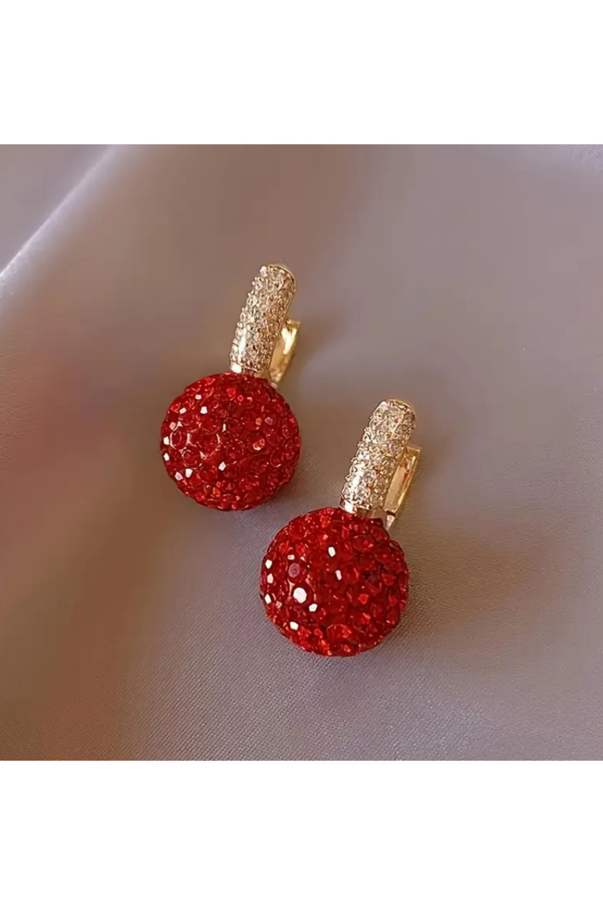Zirkon Taşlı Altın Kaplama Kırmızı Taşlı Küpe Zirkon Taşlı Altın Kaplama Kırmızı Taşlı Küpe