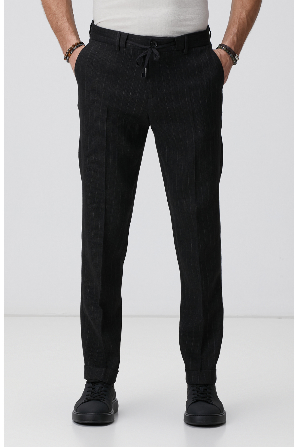 Siyah Keten Karışımlı Jogger Pantolon Siyah Keten Karışımlı Jogger Pantolon 1093944 56