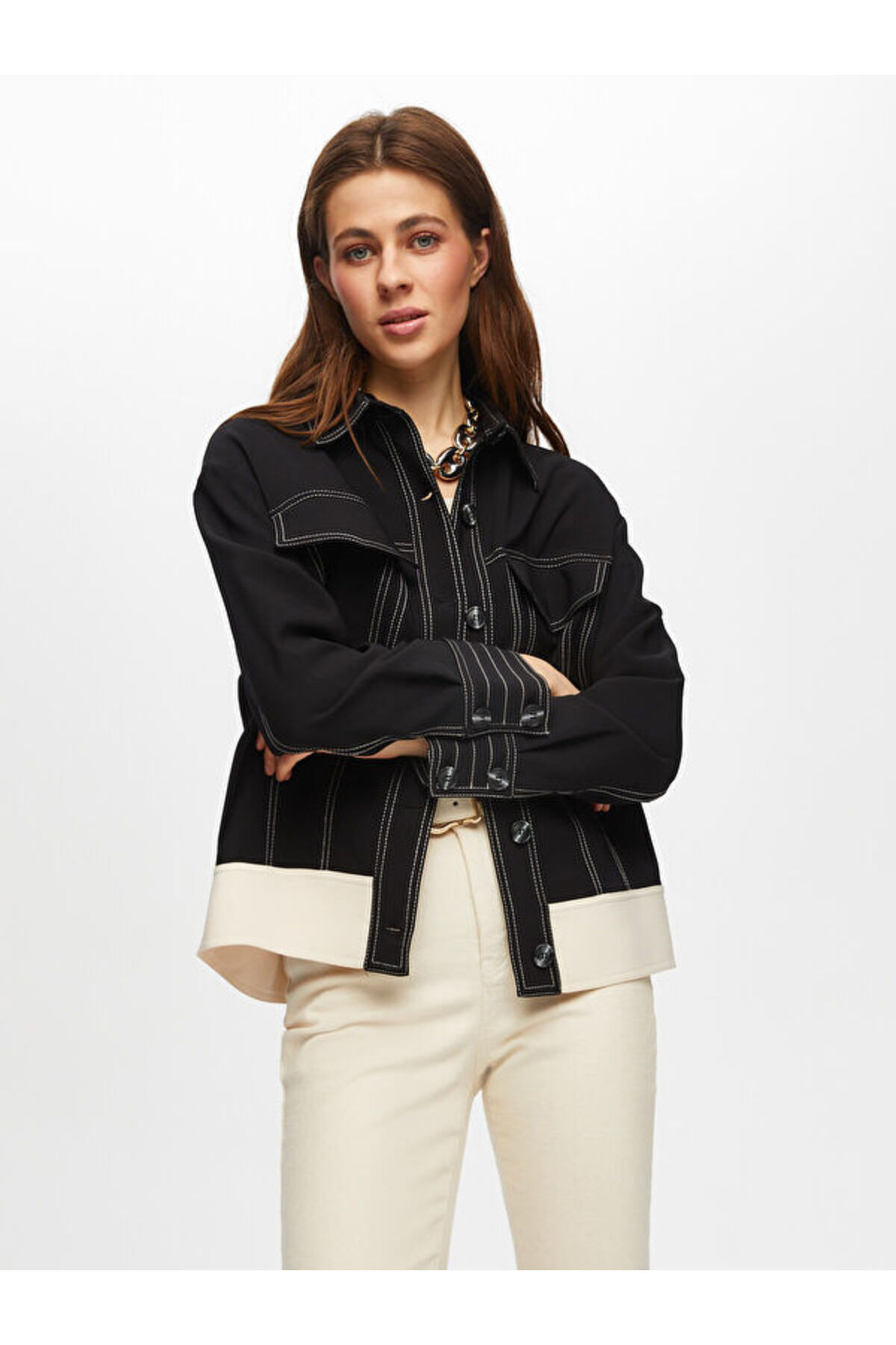 Kontrast Dikiş Detaylı Astarsız Track Ceket S25CKT015 Kontrast Dikiş Detaylı Astarsız Track Ceket S25CKT015 US25CKT015 XL