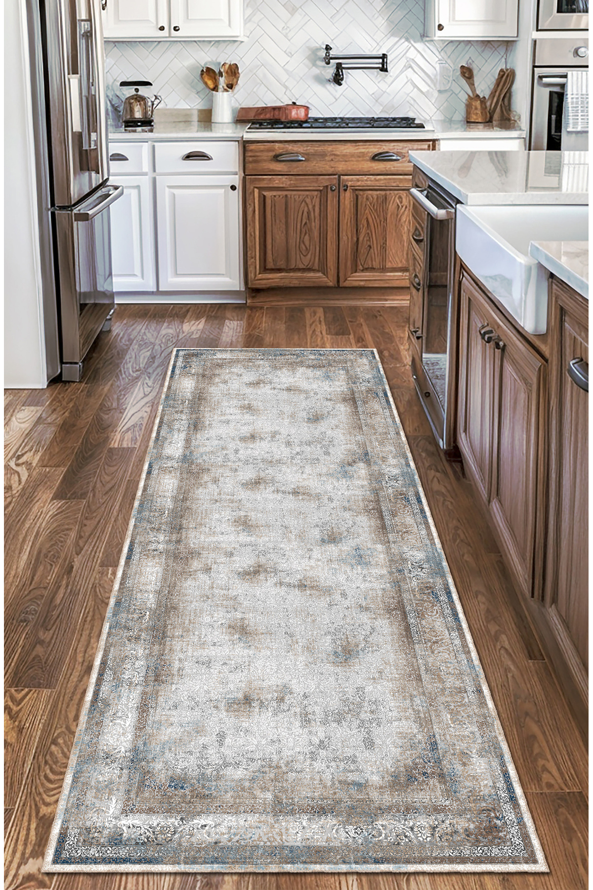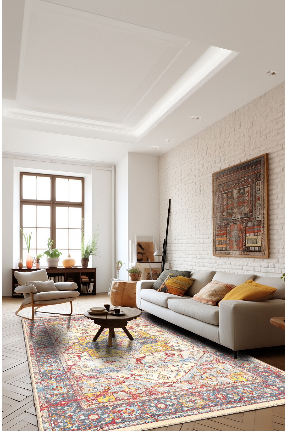 Vintage Soluk Mavi ve Bej Anadolu Halısı Dijital Şönil Halı Vintage Soluk Mavi ve Bej Anadolu Halısı Dijital Şönil Halı BIG188 100 x 100