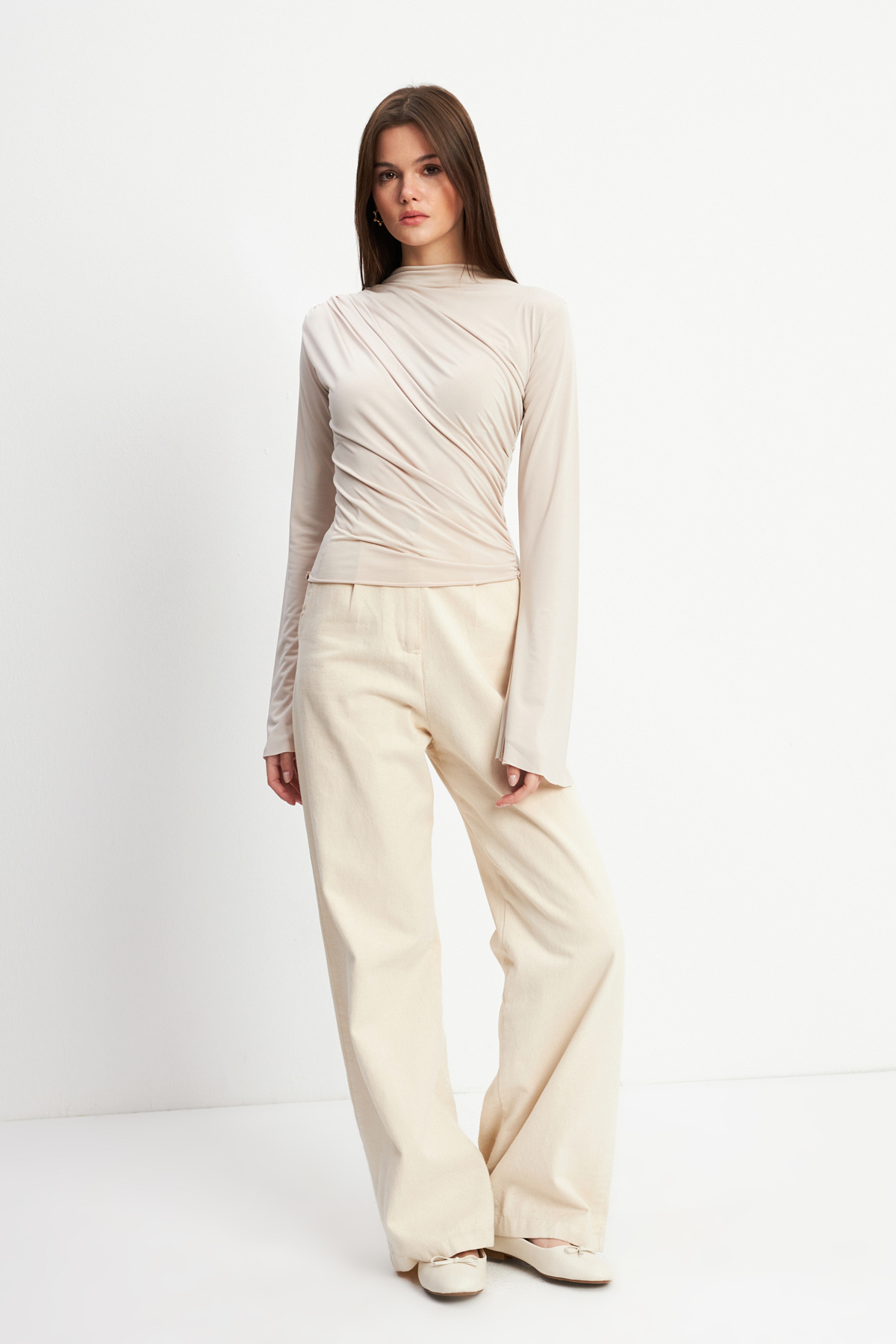 Kadın Krem Büzgü Detaylı Dik Yaka Sandy Bluz Kadın Krem Büzgü Detaylı Dik Yaka Sandy Bluz BZGL-100 L