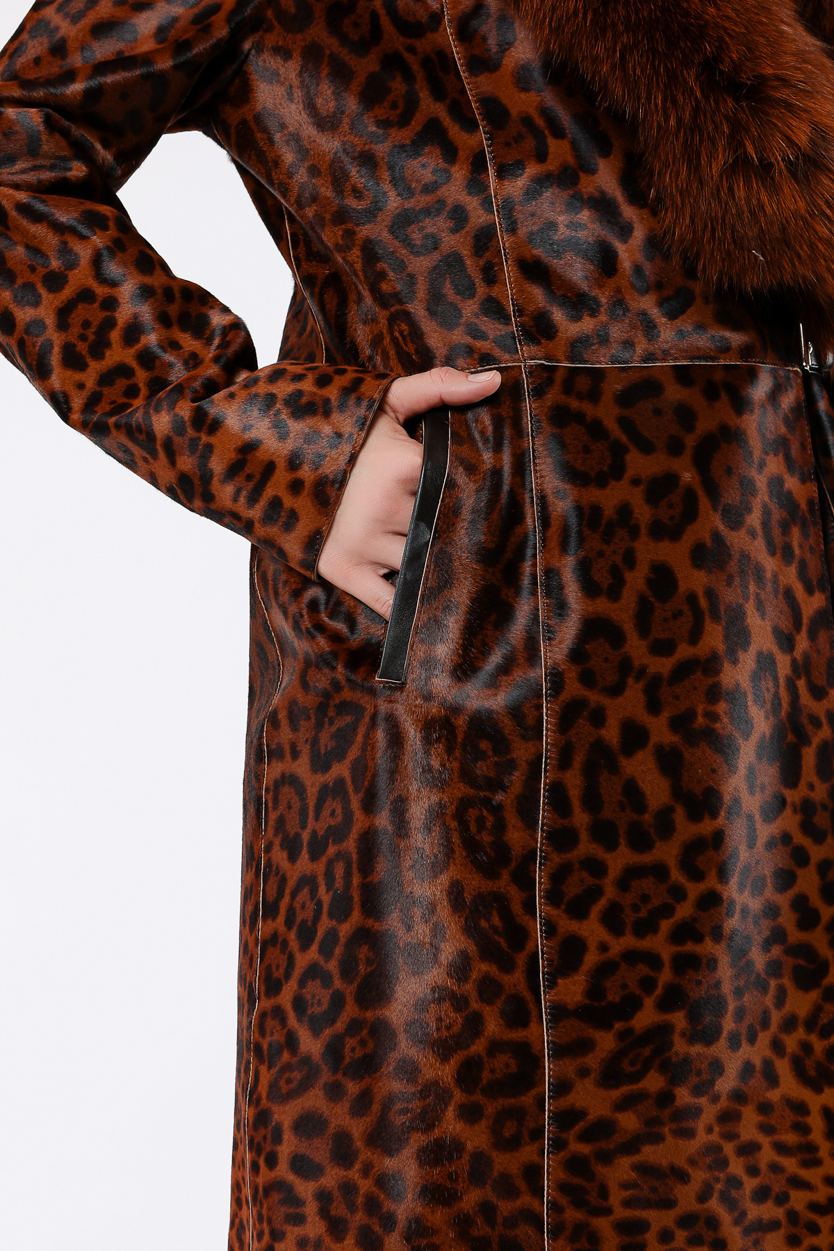 Kahve Fox Aksesuarlı Leopar Desenli Hakiki Deri Kaban Kahve Fox Aksesuarlı Leopar Desenli Hakiki Deri Kaban SR-8297 2XL