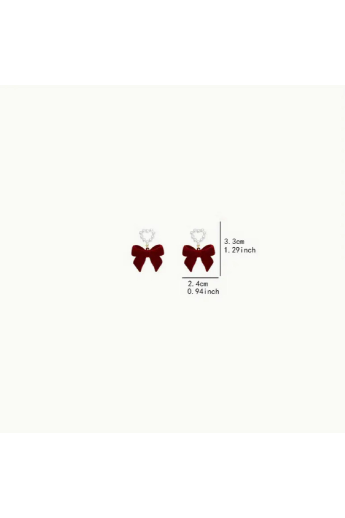 Kadife Fiyonk Şekilli İnci Kalp Detaylı Tasarım Küpe Kadife Fiyonk Şekilli İnci Kalp Detaylı Tasarım Küpe MLKP10323 1
