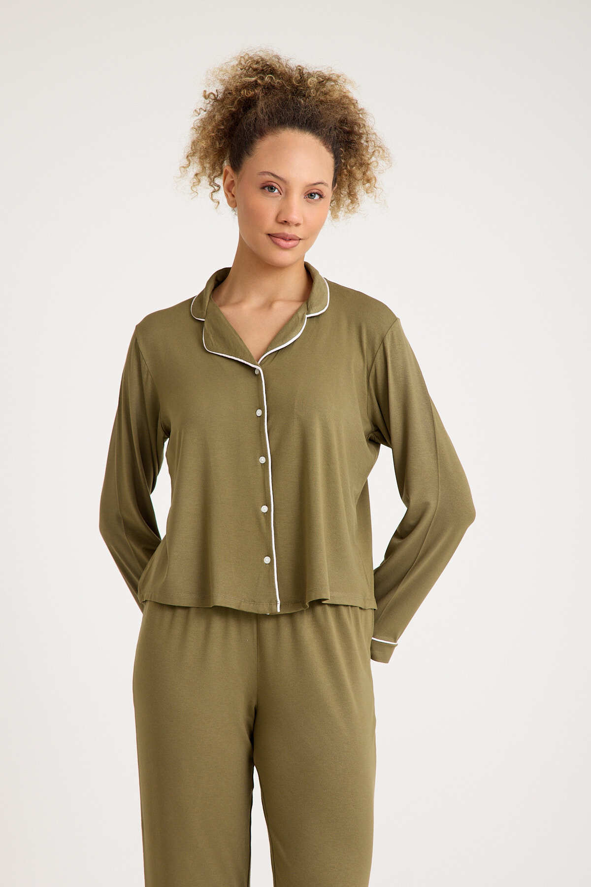 %90 Pamuk %10 Elestan Yağ Yeşili Renk Premium kalite Kadın Pijama Takımı %90 Pamuk %10 Elestan Yağ Yeşili Renk Premium kalite Kadın Pijama Takımı NO52-2025-KPJM-TK XL