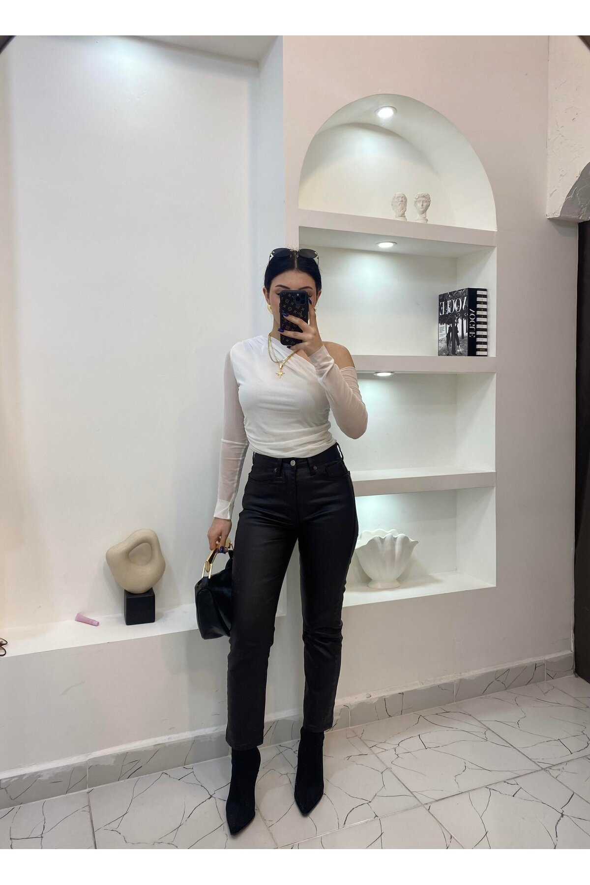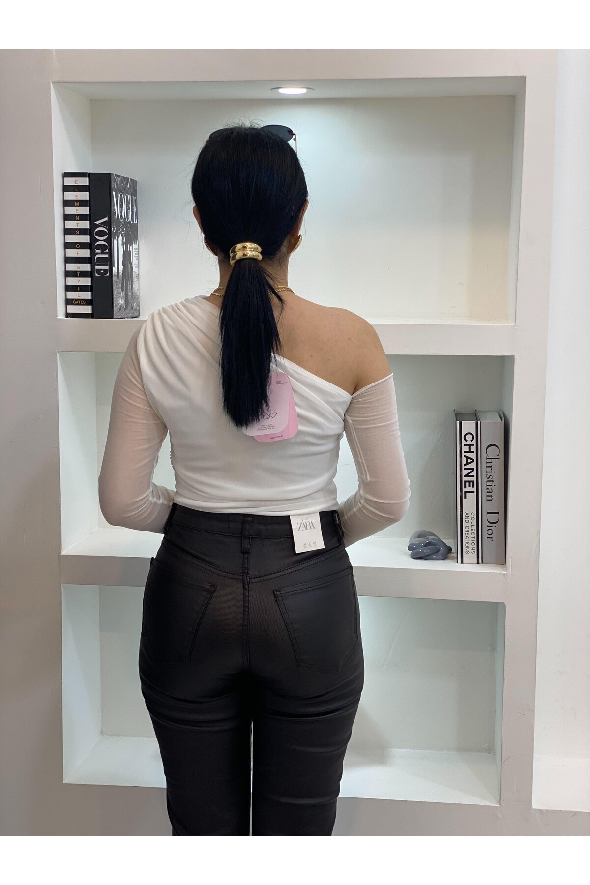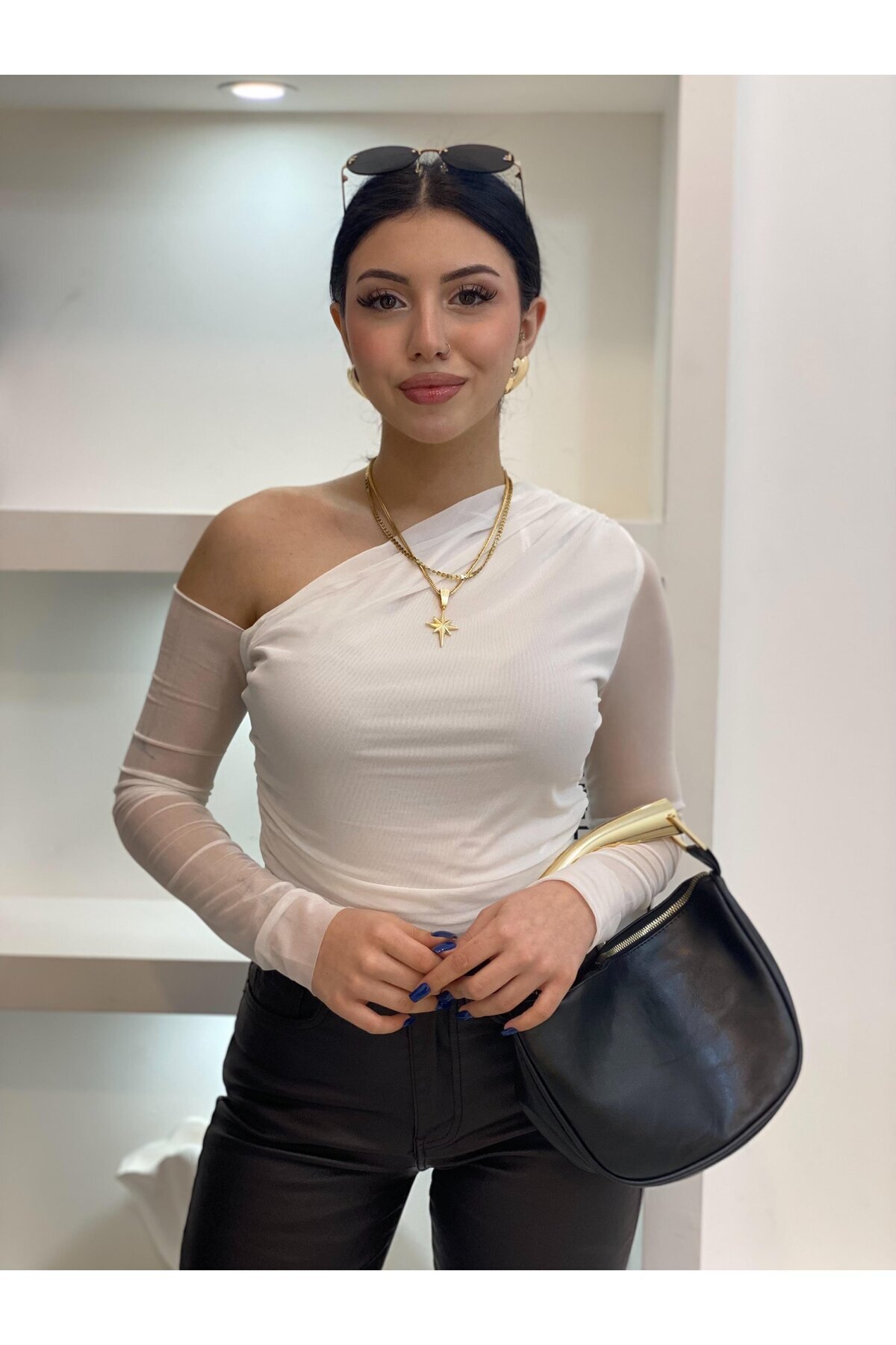 Kadın Kolları Tül Asimetrik Kesim Bluz Kadın Kolları Tül Asimetrik Kesim Bluz kuz-54