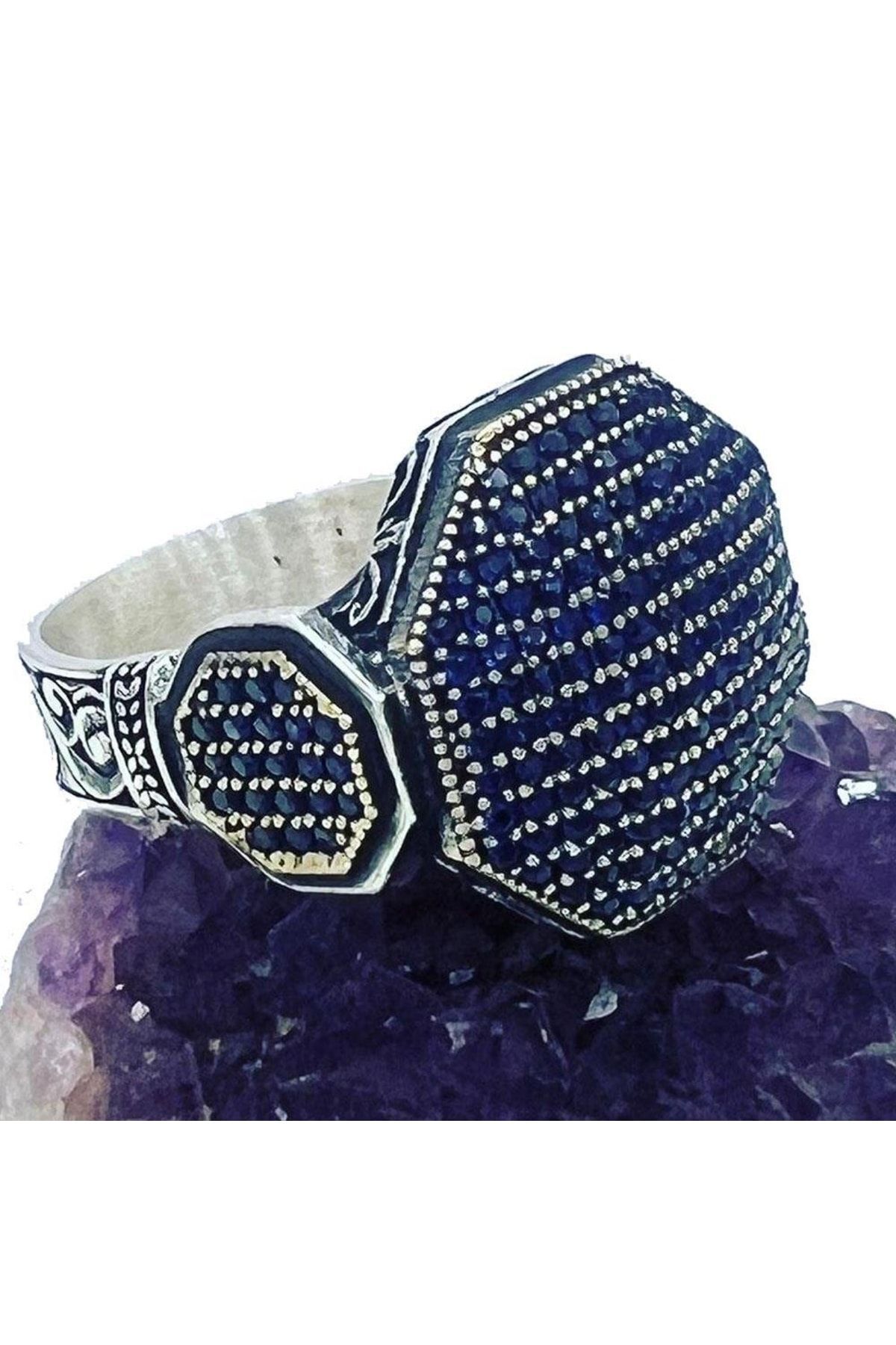 Lacivert Ay Yıldız Tabanca İşlemeli Gümüş Yüzük Lacivert Ay Yıldız Tabanca İşlemeli Gümüş Yüzük DEY2277 33