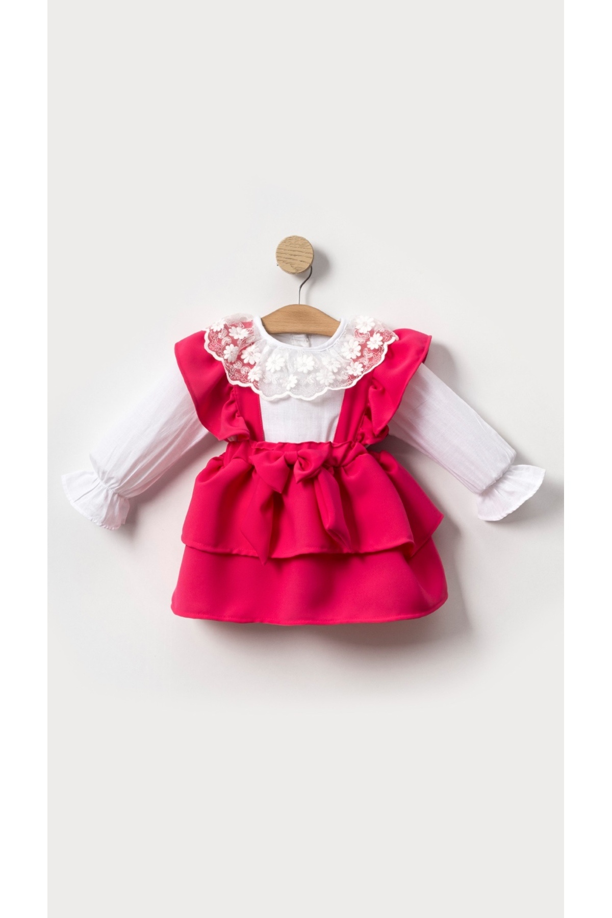 Tatlı Fitilli Şapkalı Fiyonklu Kız Bebek Elbisesi Tatlı Fitilli Şapkalı Fiyonklu Kız Bebek Elbisesi 60218 18-24 AY