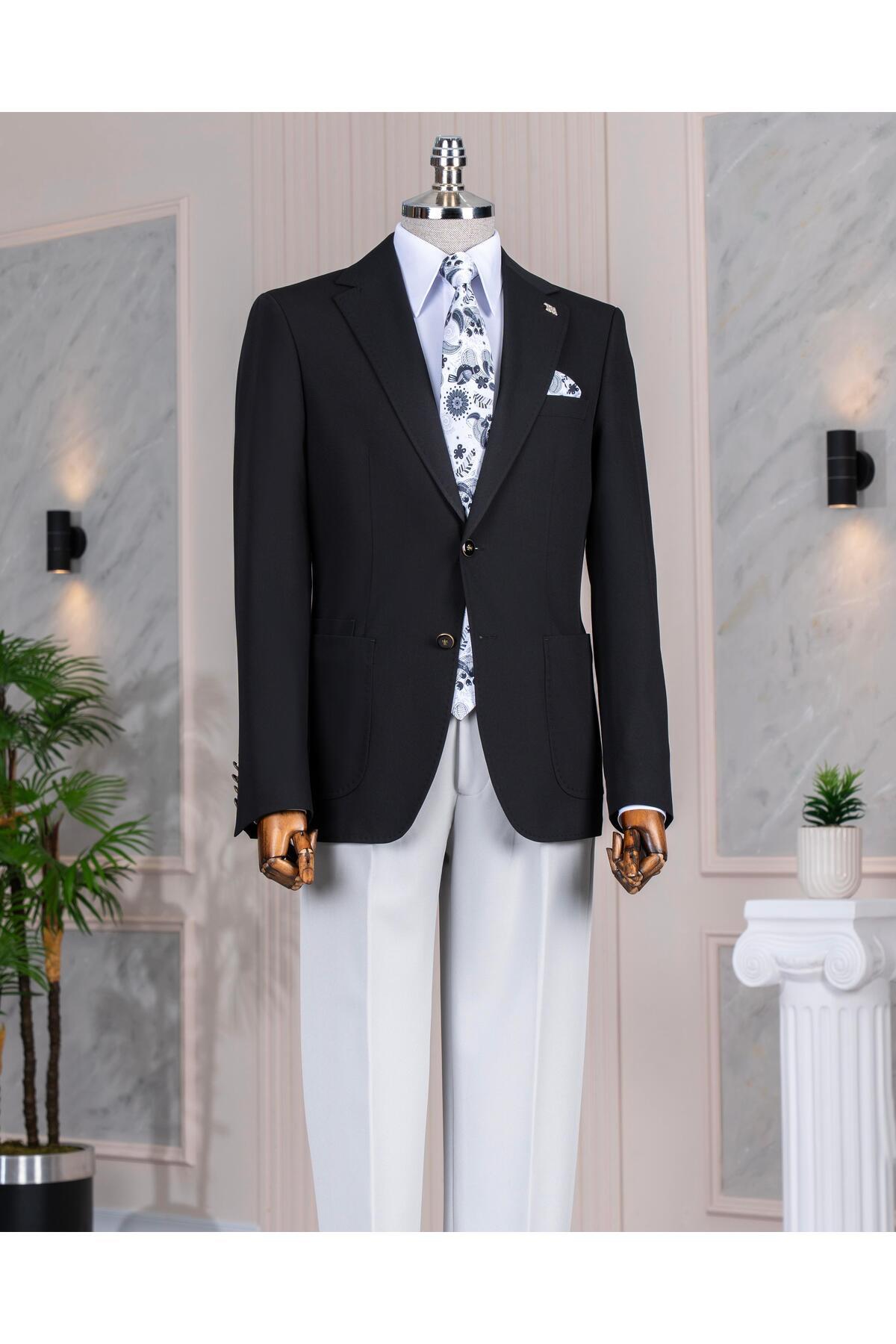 İtalyan stil slim fit sivri yaka erkek ceket siyah T13235 İtalyan stil slim fit sivri yaka erkek ceket siyah T13235 58