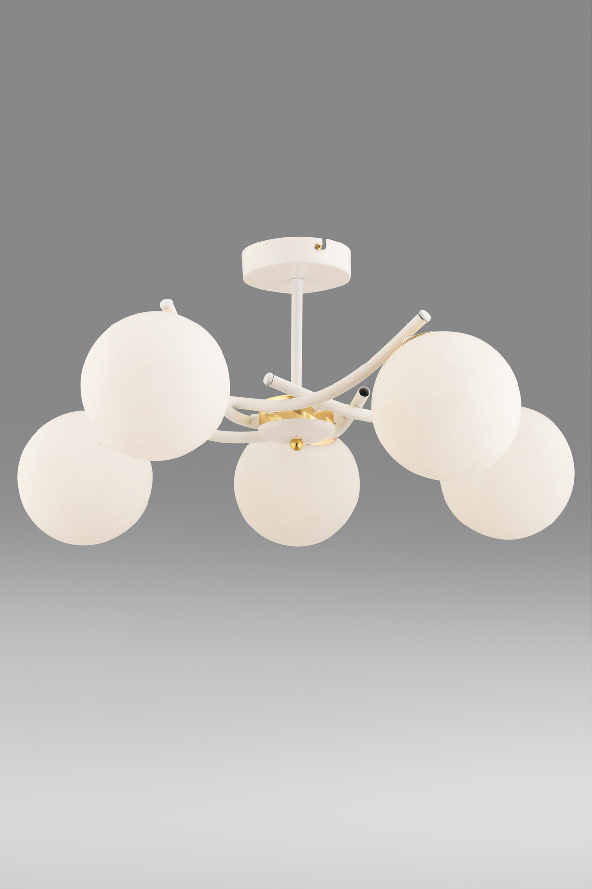 FERMA 5'Lİ BEYAZ GLOP CAMLI MODERN PLAFONYER AVİZE Salon oturma odası Hol Yatak Odası FERMA 5'Lİ BEYAZ GLOP CAMLI MODERN PLAFONYER AVİZE Salon oturma odası Hol Yatak Odası AV-AVZ0069 تک سایز