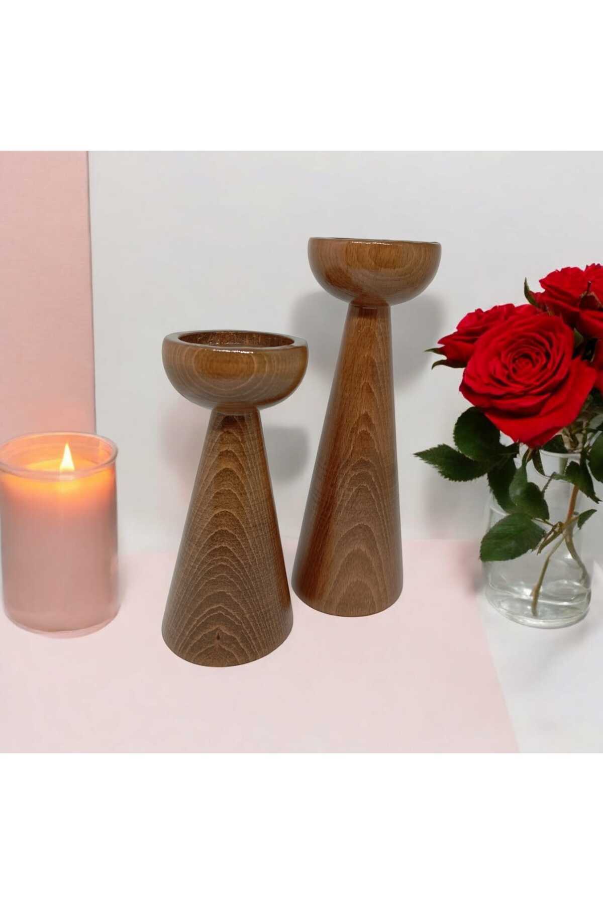 Doğal Ahşap Mumluk Vernikli şamdan 2'li Doğal Ahşap Mumluk Vernikli şamdan 2'li Cşmdan7 تک سایز