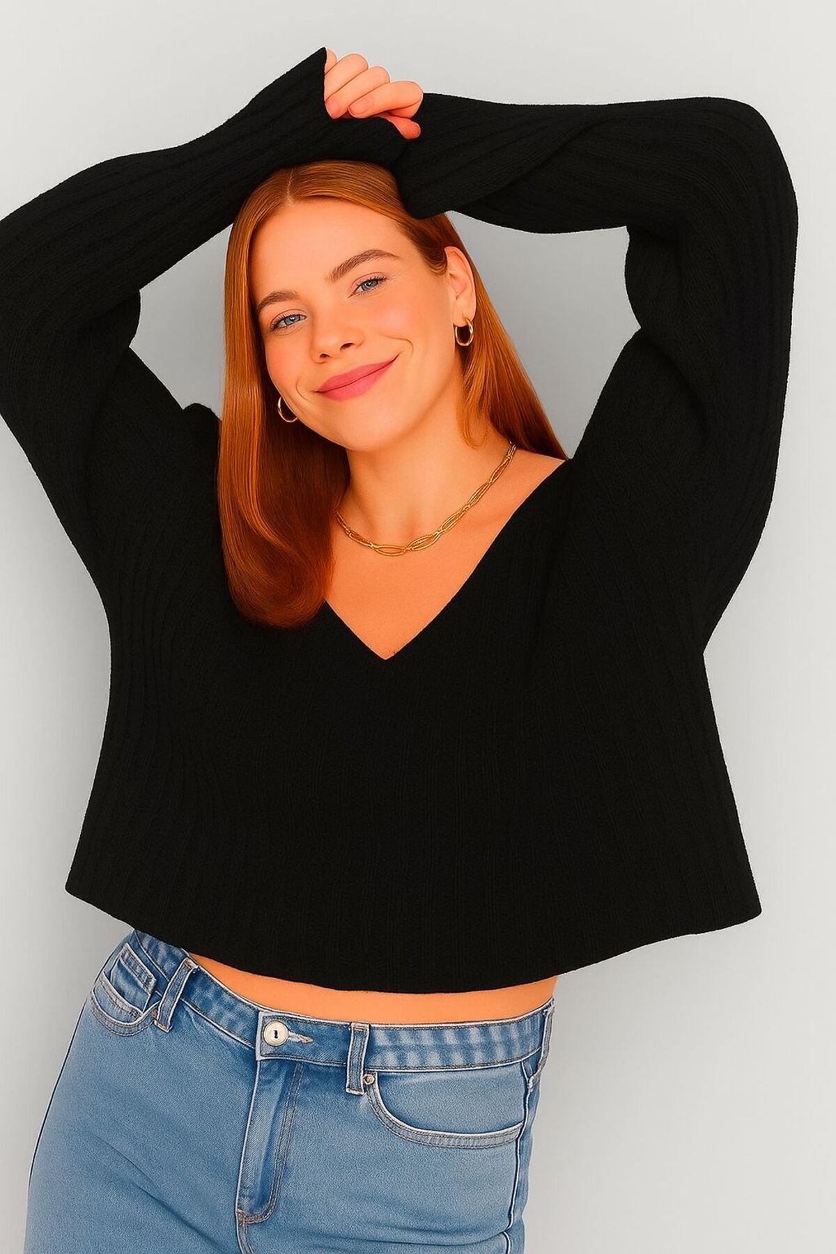 GENİŞ V YAKA TRİKO CROP KAZAK GENİŞ V YAKA TRİKO CROP KAZAK YG601 Standart