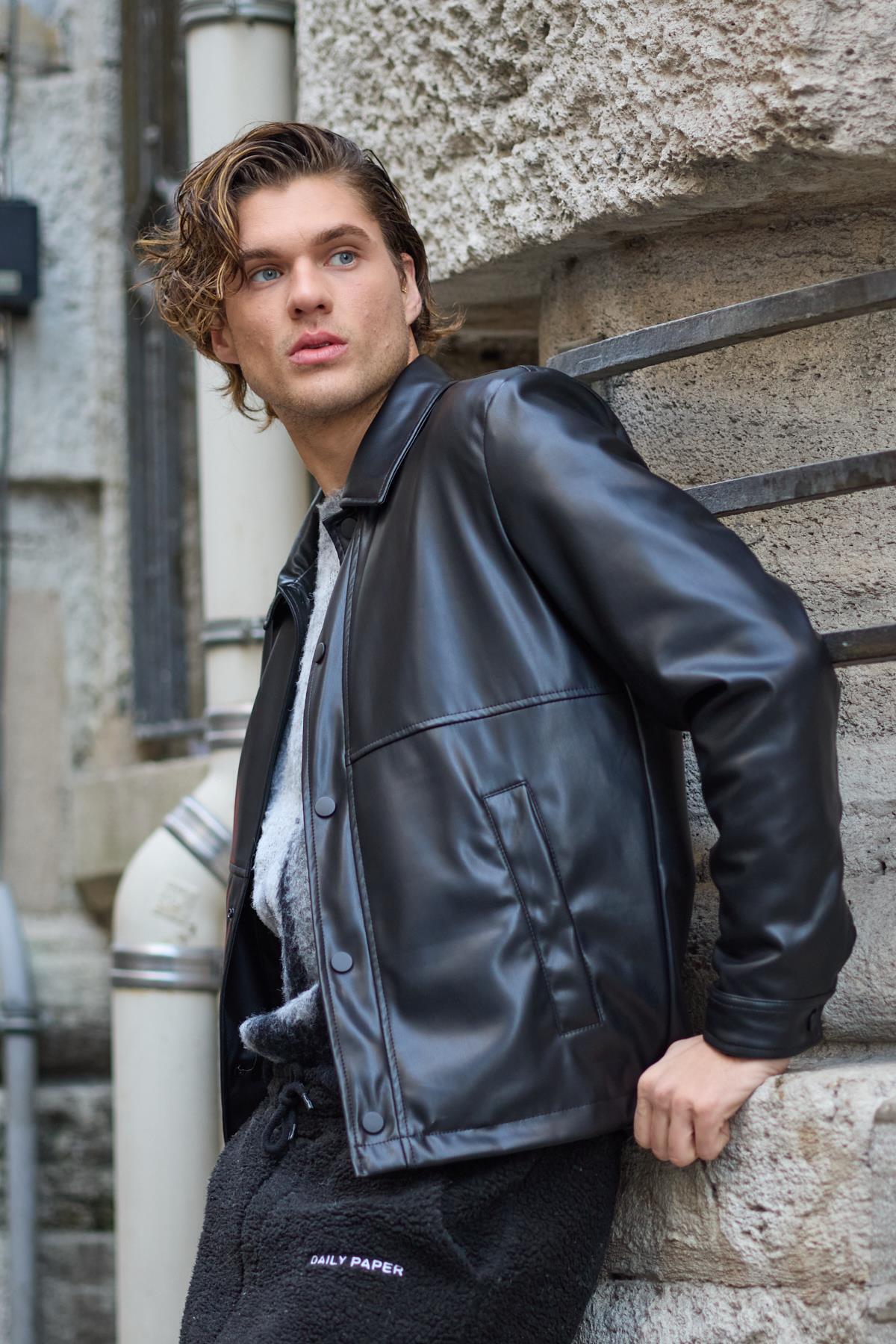 Erkek Gömlek Yaka Deri Taş Ceket Erkek Gömlek Yaka Deri Taş Ceket 4025DNGR XL