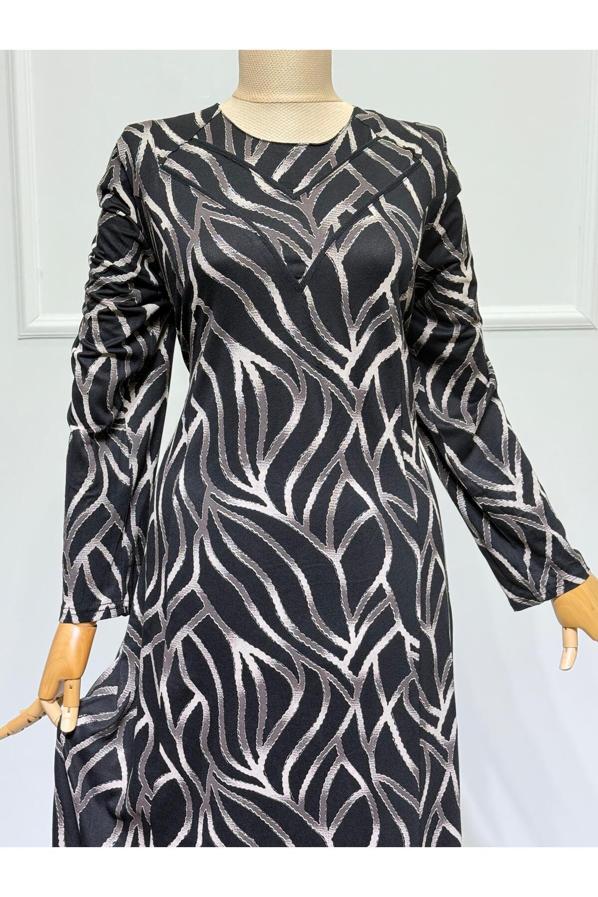 Kadın Yeni Sezon Penye Yakası Biyeli Simli Anne Elbisesi Kadın Yeni Sezon Penye Yakası Biyeli Simli Anne Elbisesi KC2562 44/46