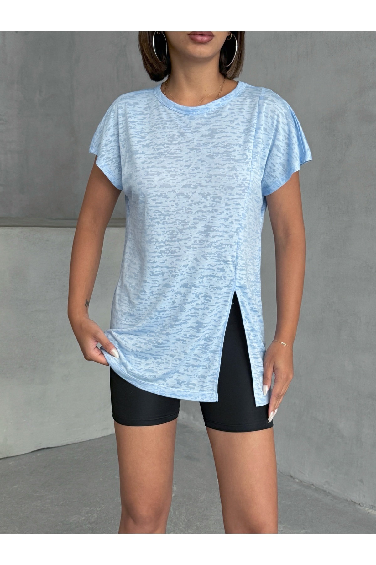 Yanı Yırtmaçlı Yumuşak Dokulu T-shirt MISSTS2522 Yanı Yırtmaçlı Yumuşak Dokulu T-shirt MISSTS2522 XL