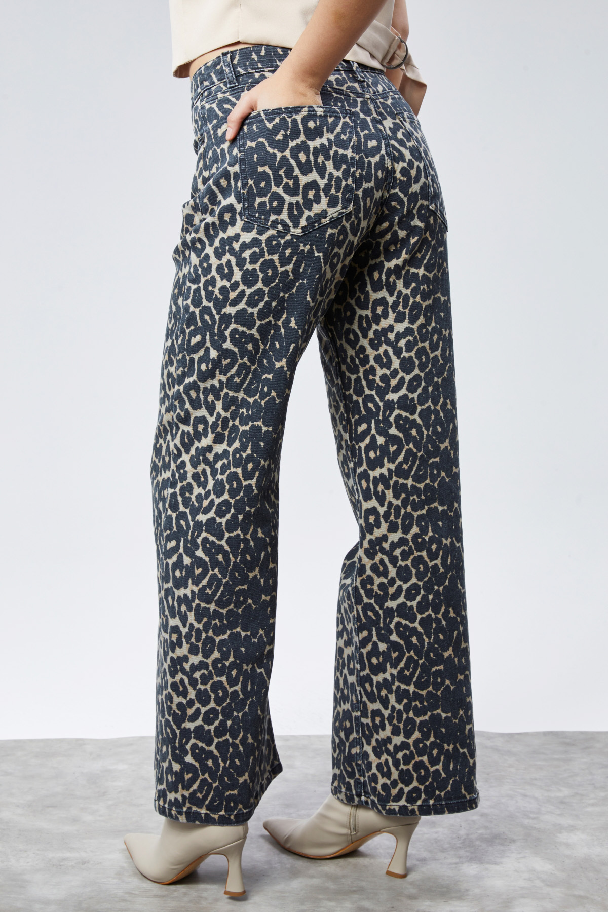 Leopar Desenli Palazzo Yüksek Bel Esnek Jean Pantolon C613 Bej Leopar Desenli Palazzo Yüksek Bel Esnek Jean Pantolon C613 Bej 33