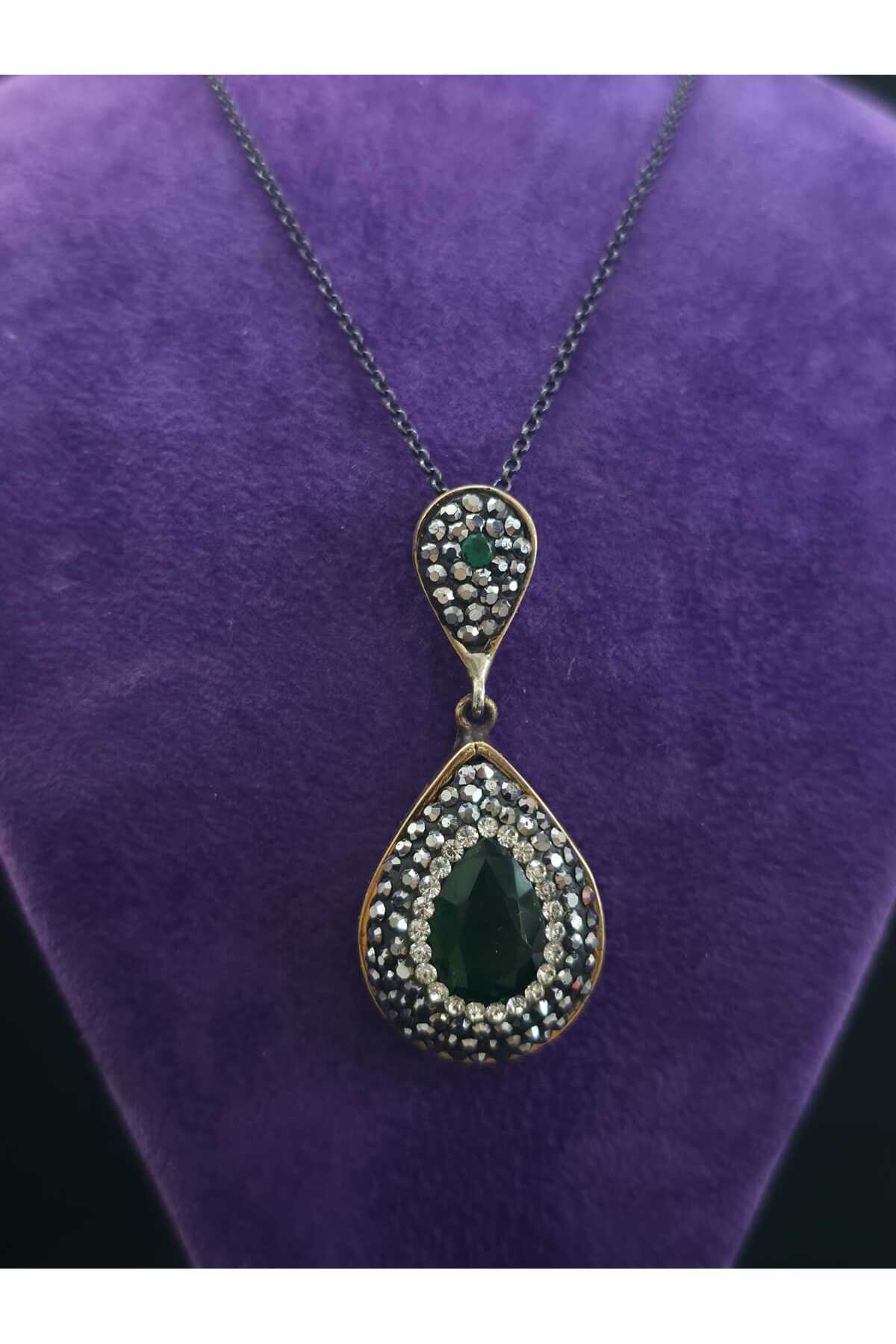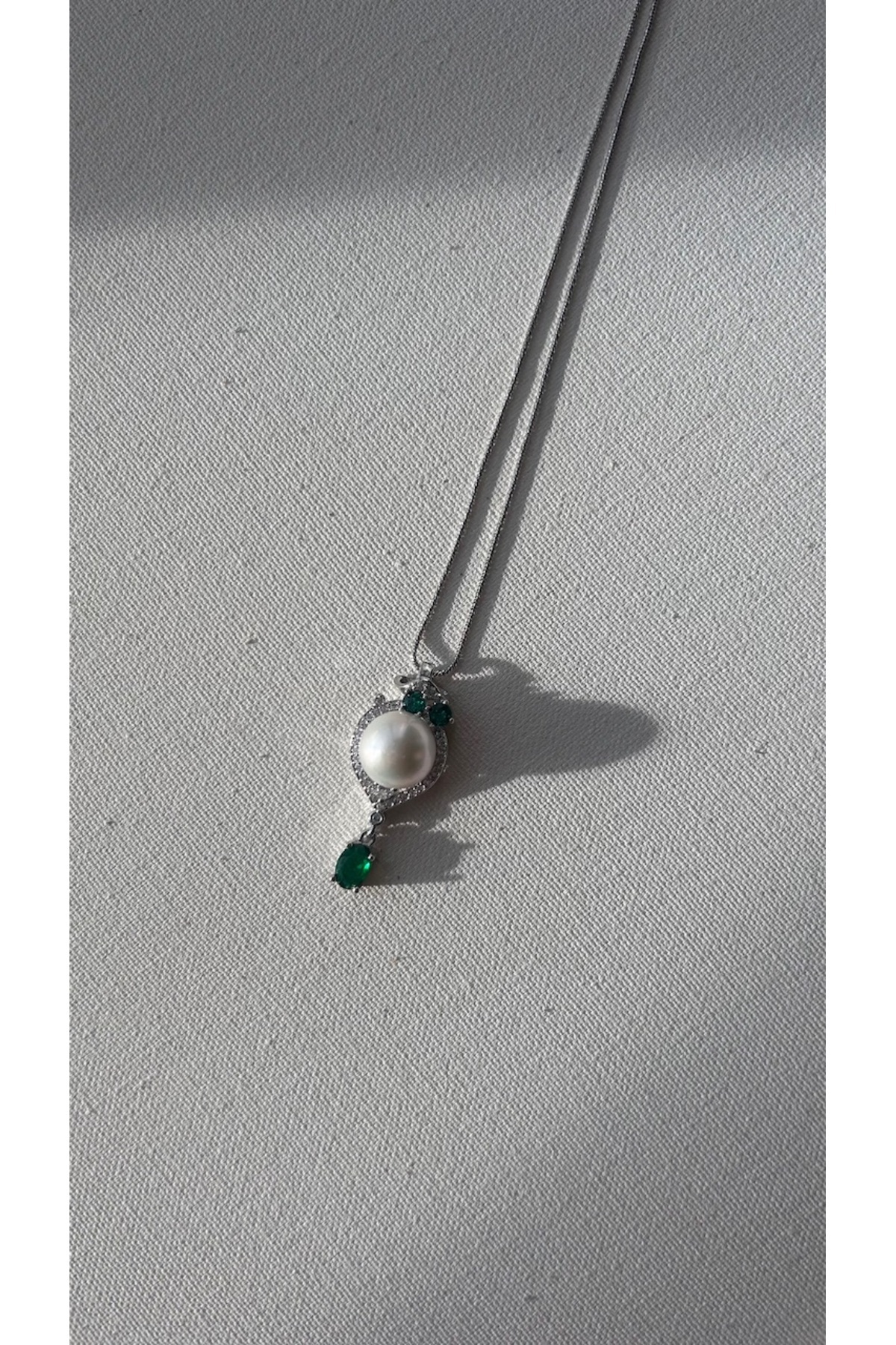 İnci zümrüt uçlu 925 ayar gümüş kolye İnci zümrüt uçlu 925 ayar gümüş kolye P2512S5605 45 cm