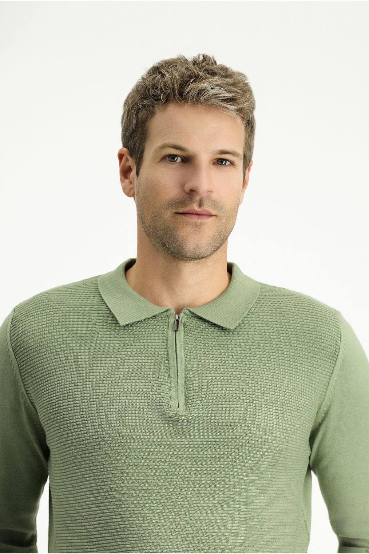 Polo Yaka Regular Fit Fermuarlı Desenli Pamuklu Triko Kazak Polo Yaka Regular Fit Fermuarlı Desenli Pamuklu Triko Kazak KK25DBH0DS002 7XL