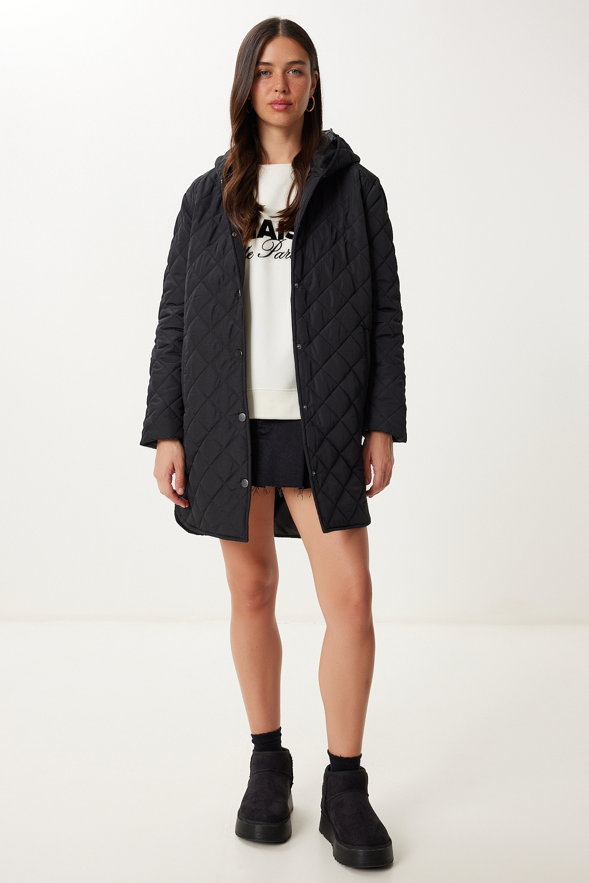 Siyah Su Iticili Kapüşonlu, Fermuar Ve Çıtçıtlı Kol Lastikli Kadın Yağmurluk Mont @sintra Siyah Su Iticili Kapüşonlu, Fermuar Ve Çıtçıtlı Kol Lastikli Kadın Yağmurluk Mont @sintra WN24WODMCE02206 2XL
