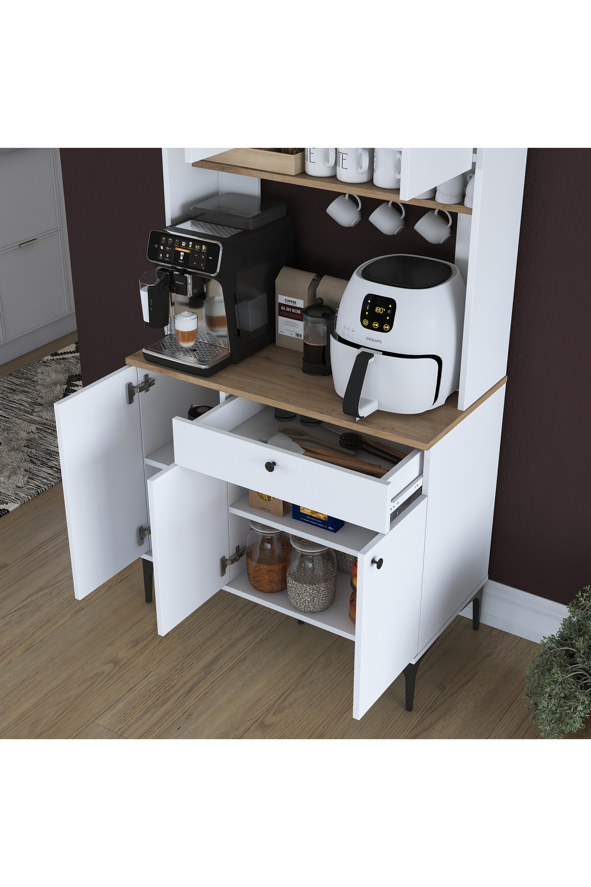 Rani JE196 Çok Amaçlı Dolap 6 Kapaklı 1 Çekmeceli Kiler Mutfak Dolabı Sepet Ceviz - Beyaz Rani JE196 Çok Amaçlı Dolap 6 Kapaklı 1 Çekmeceli Kiler Mutfak Dolabı Sepet Ceviz - Beyaz 3805 تک سایز