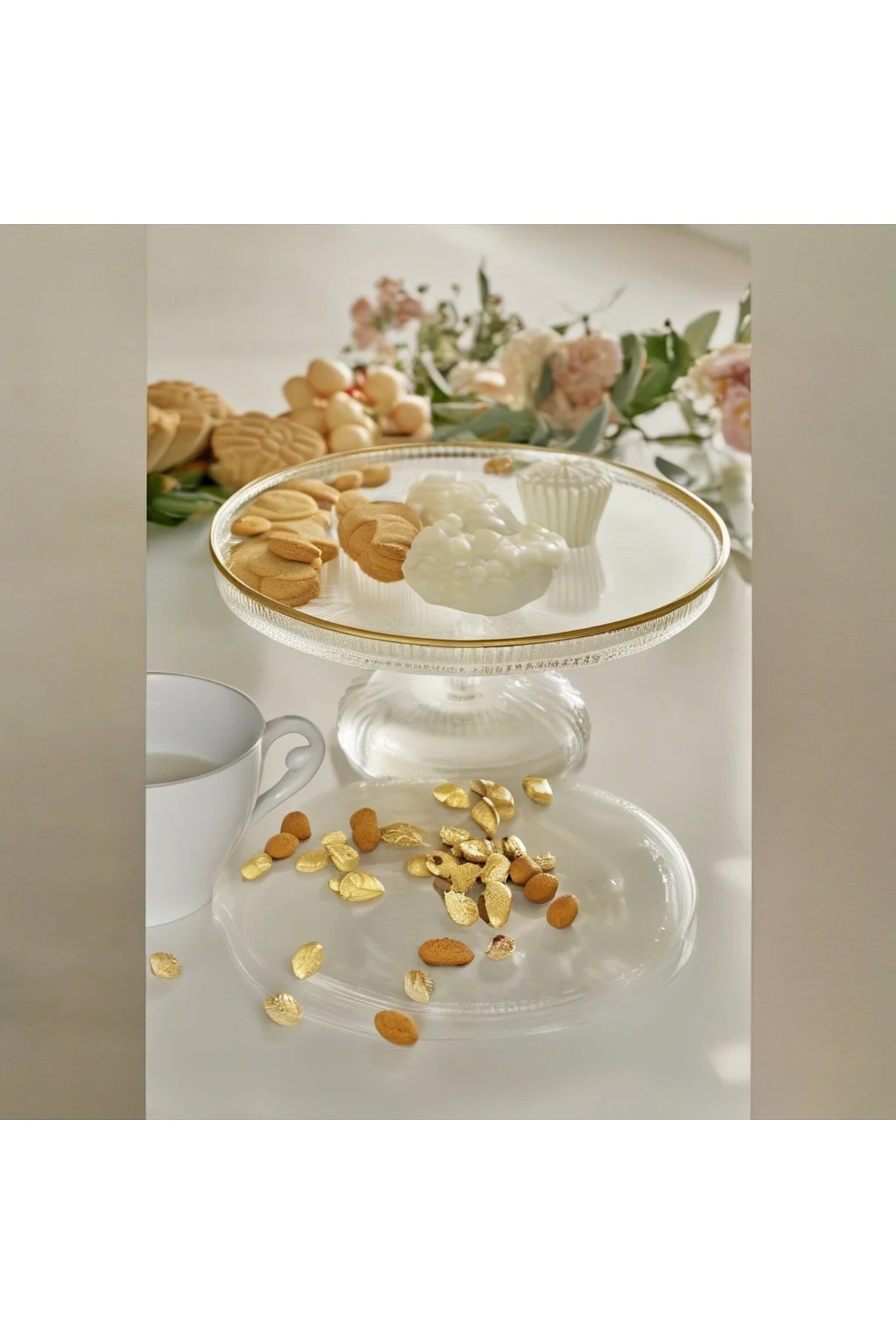 Gold Yaldızlı Cam Ayaklı Pasta Kek Kahve yanı Sunum Stand Tabağı- 16 cm Gold Yaldızlı Cam Ayaklı Pasta Kek Kahve yanı Sunum Stand Tabağı- 16 cm AyaklıSunumluk تک سایز