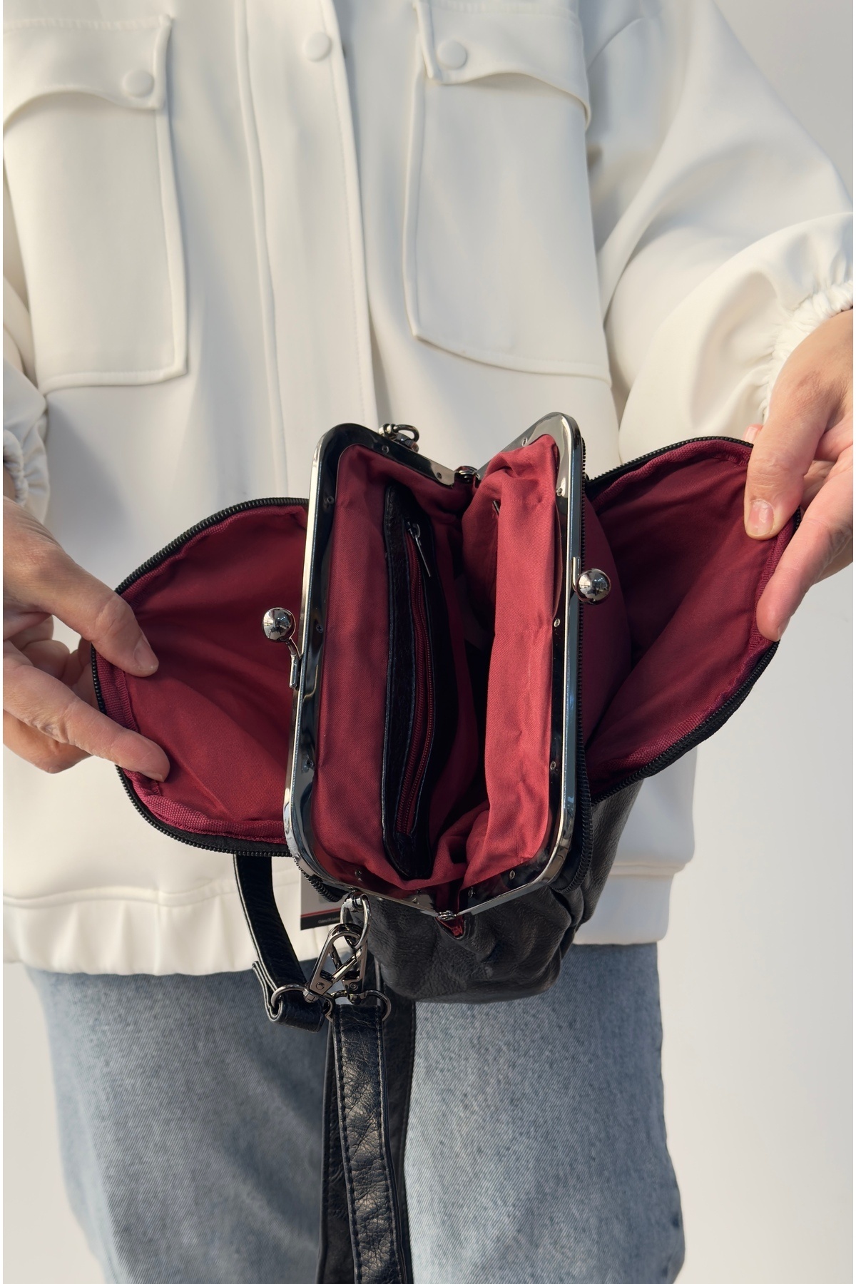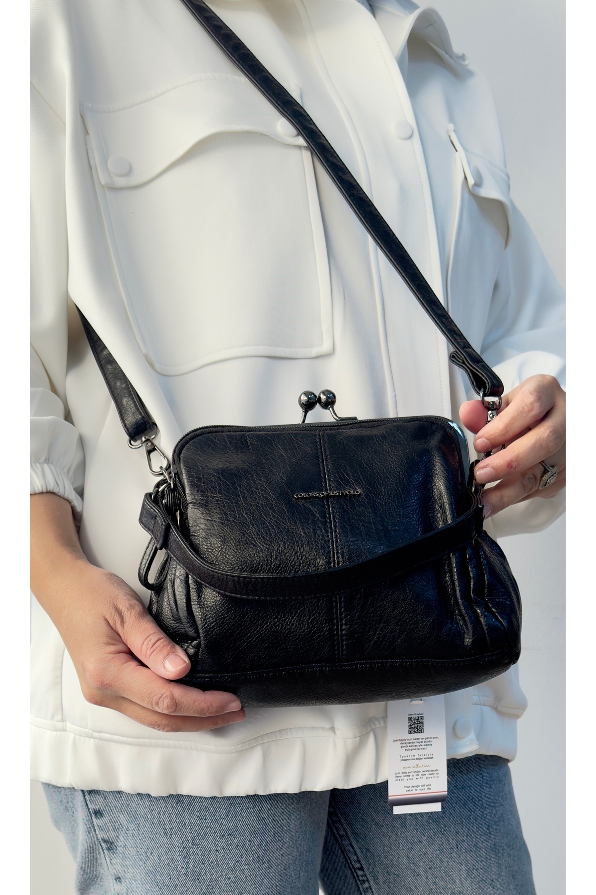 مشخصات فنی KADIN SİYAH İTHAL DERİ ÇOK BÖLMELİ OMUZ ÇANTASI TYCET078745